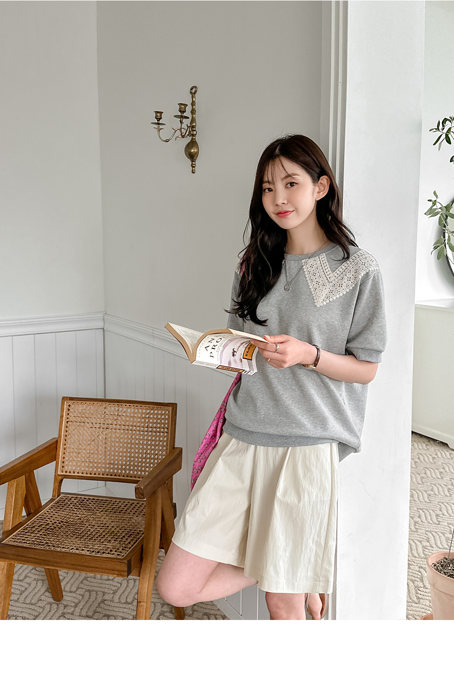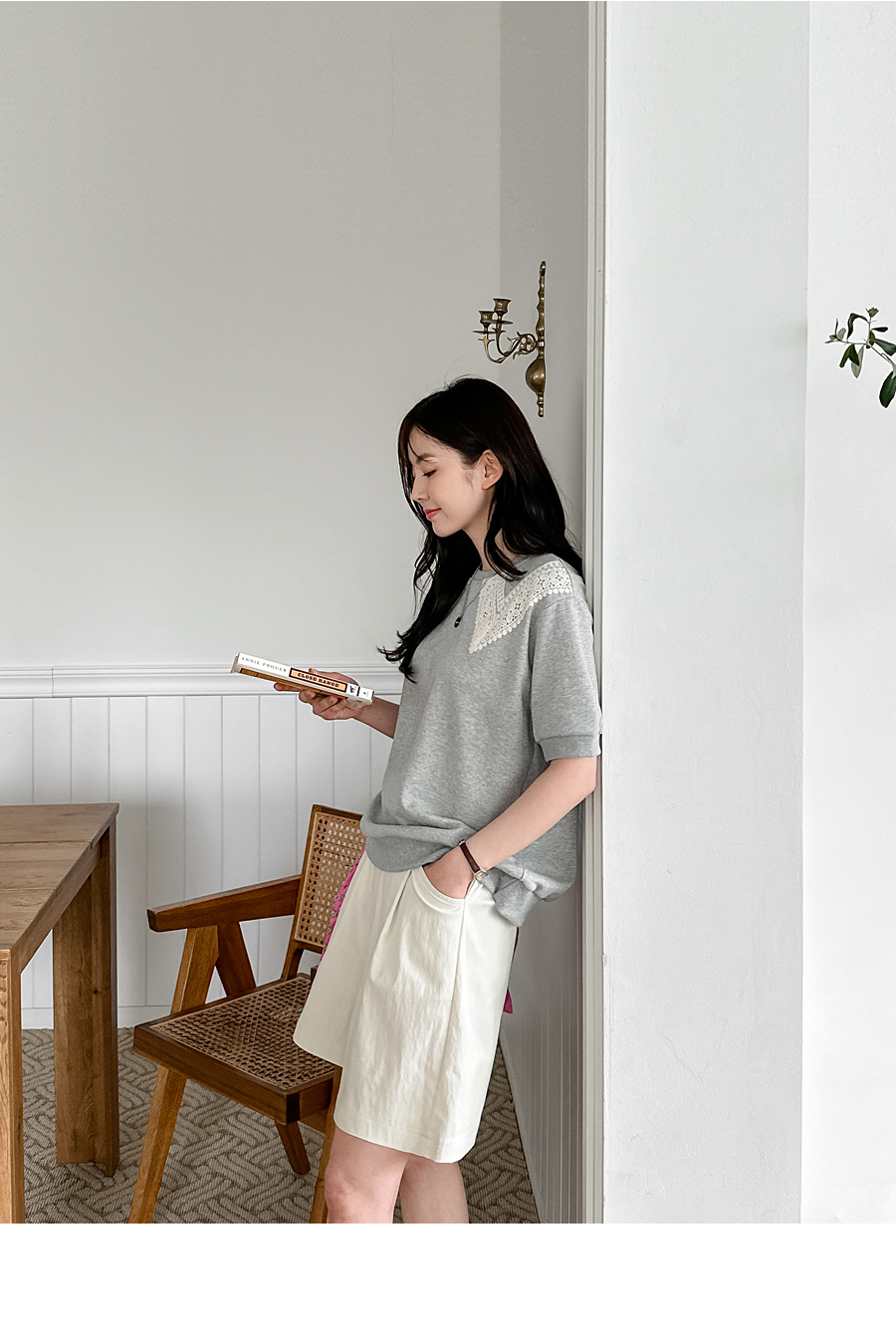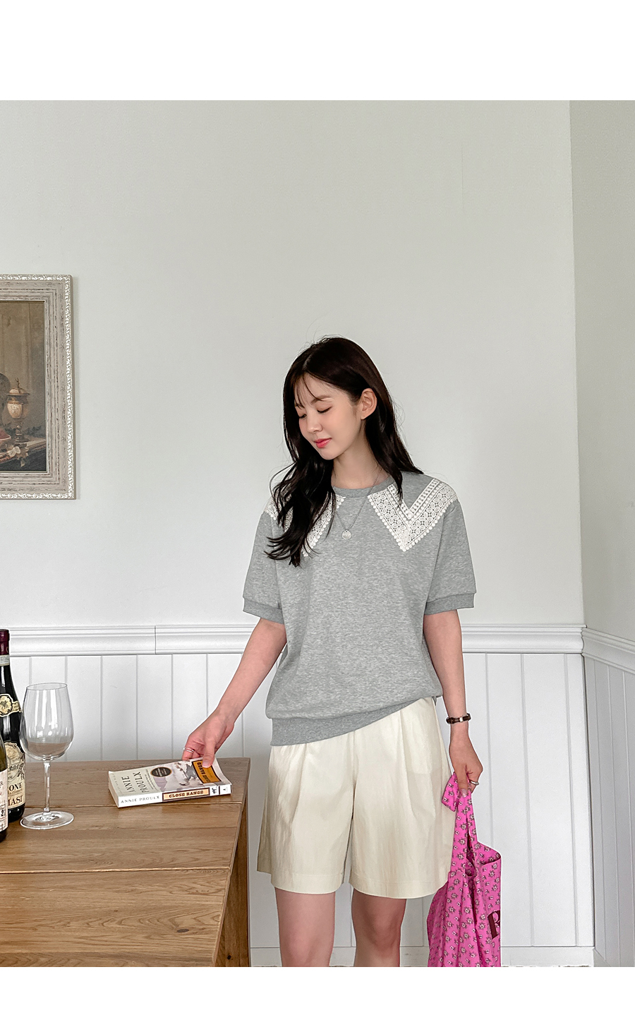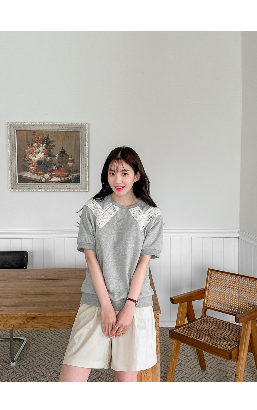 네크라인에만 레이스가 붙여져 있어서