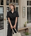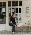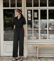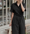 Simple yet stylish jump suit! The waist line looks narrow and the leg line looks long (2 colors)