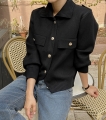 Gold button key point on stylish shoulder strap detail! High-density knit weave makes it sturdy and thick (3 colors)