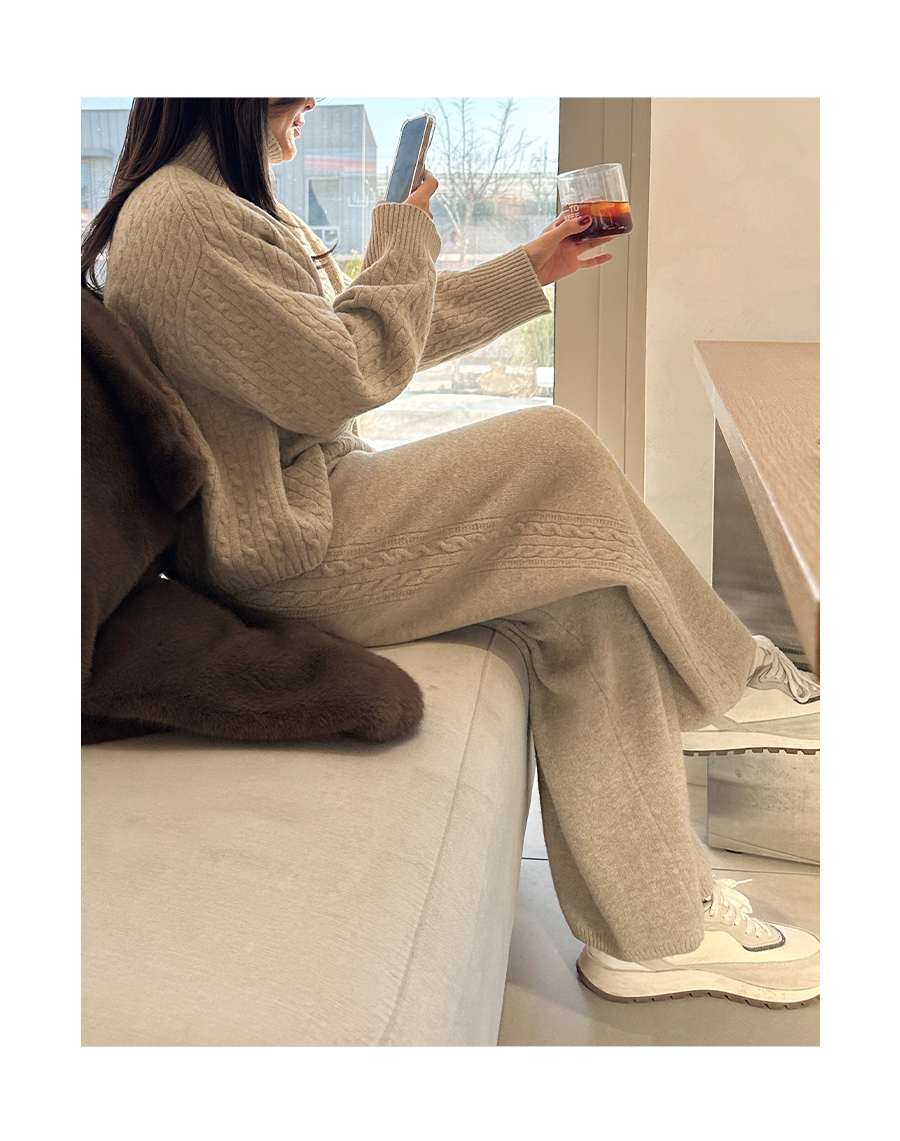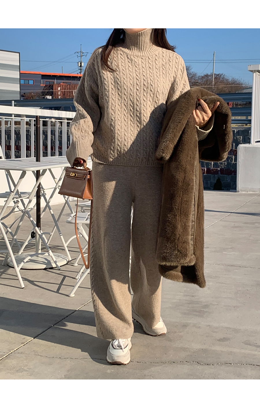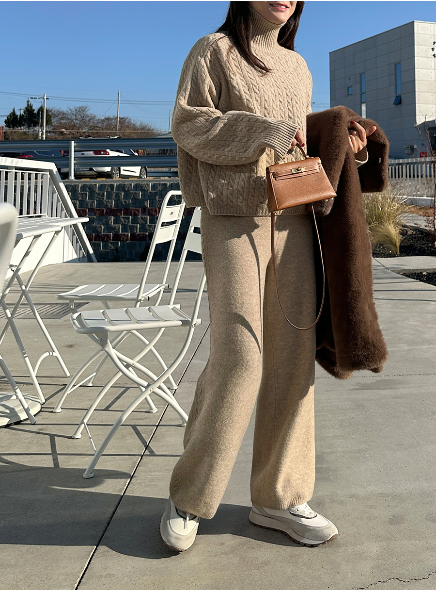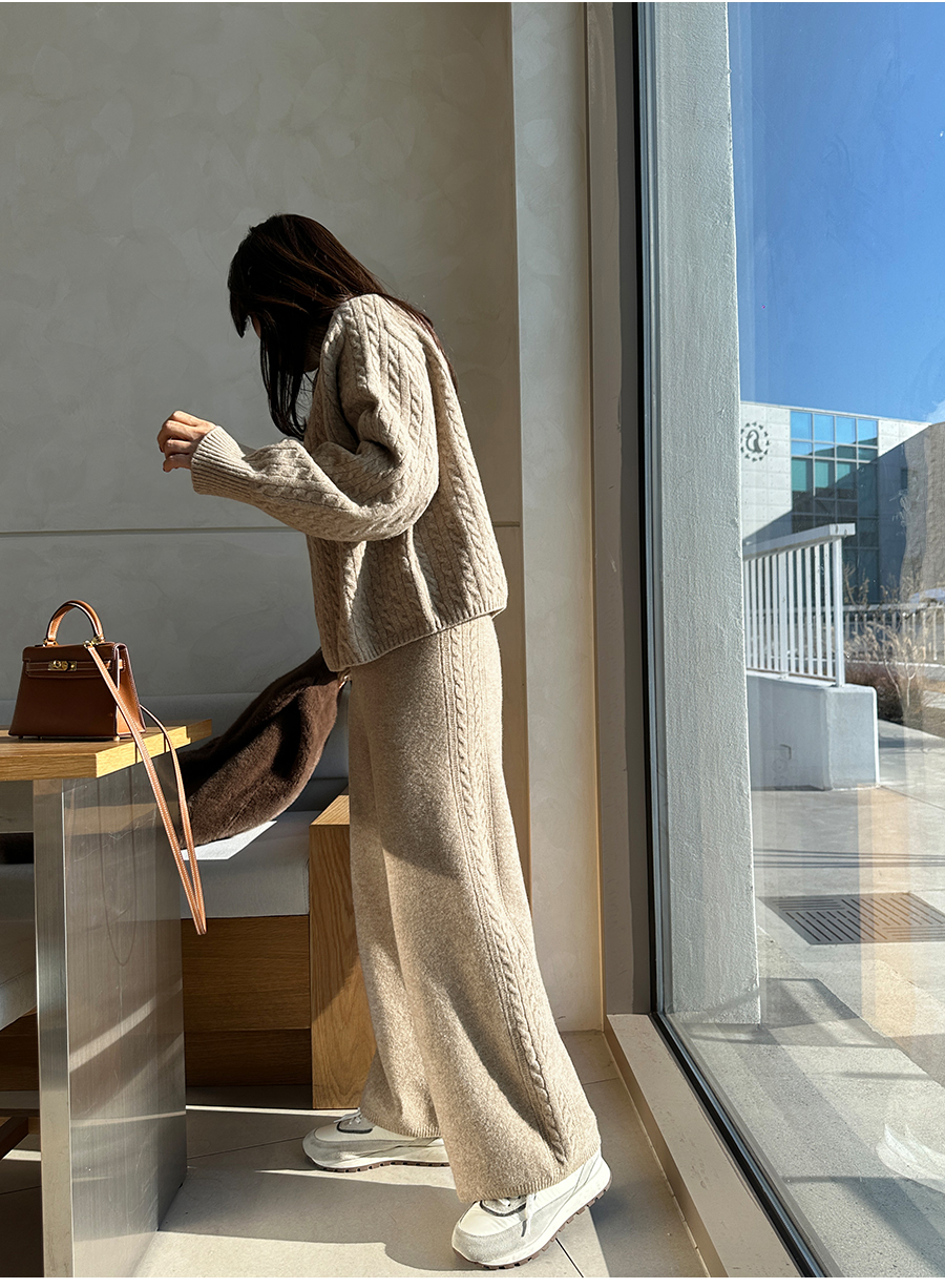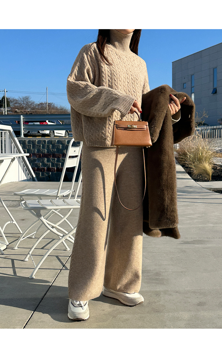 [Set recommendation] Chic wide fit with side line cable weave, soft and warm wool blend for a comfortable fit! (3 colors)