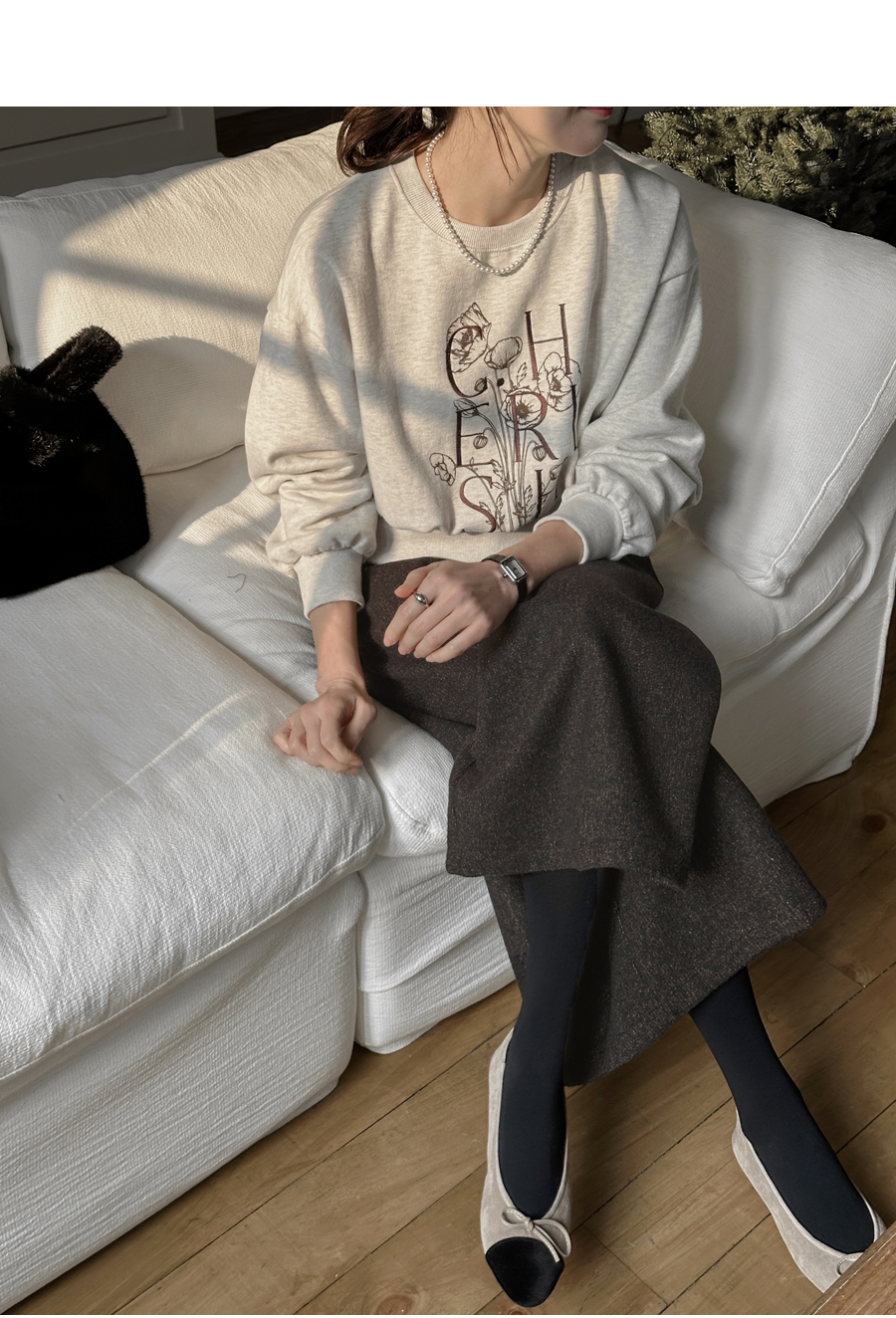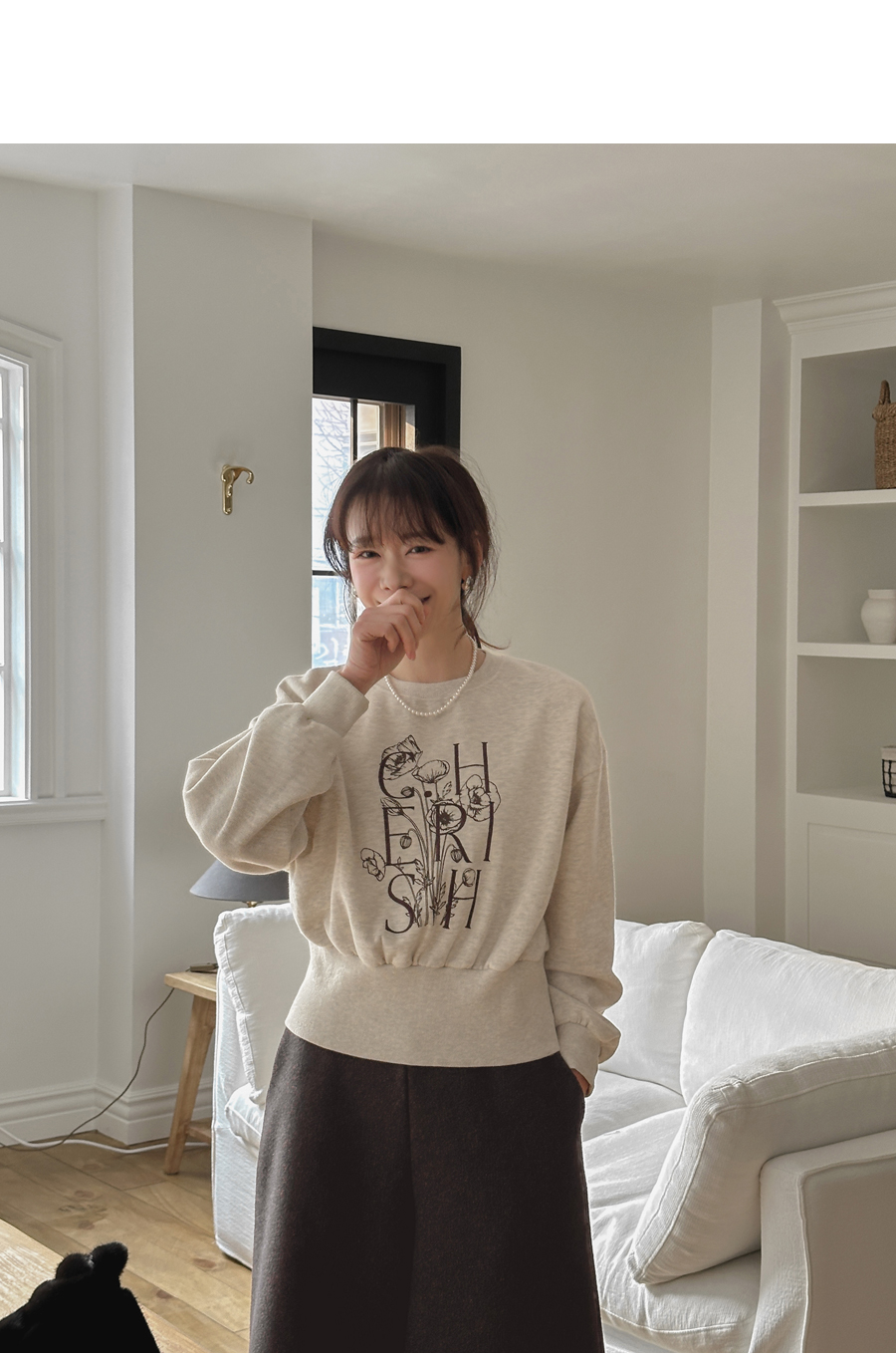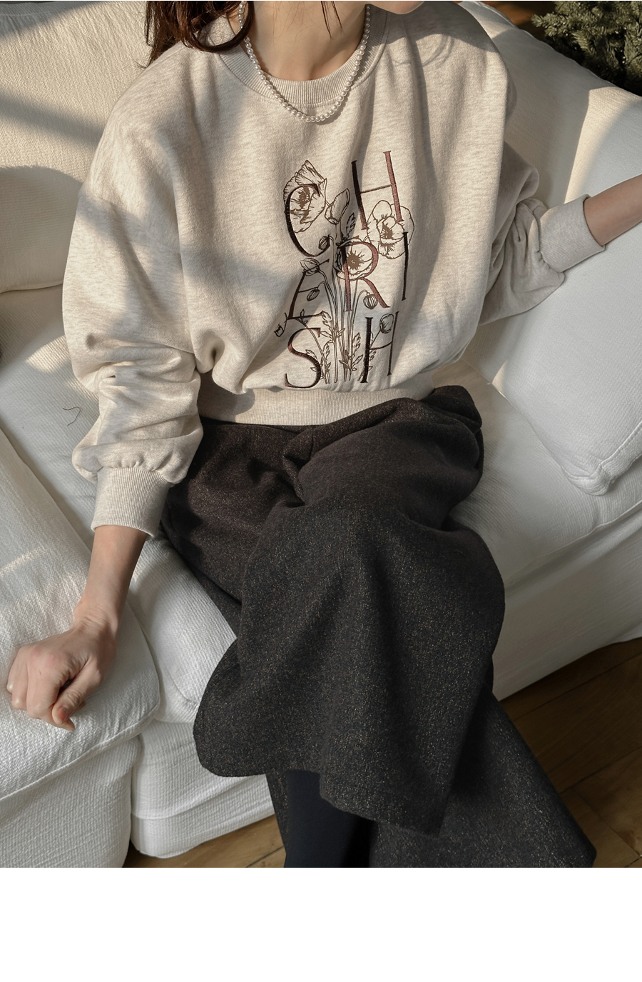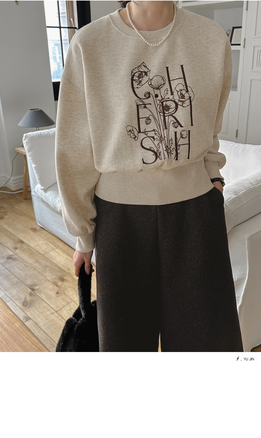 플라워 프린팅과 레터링 자수가 만난