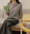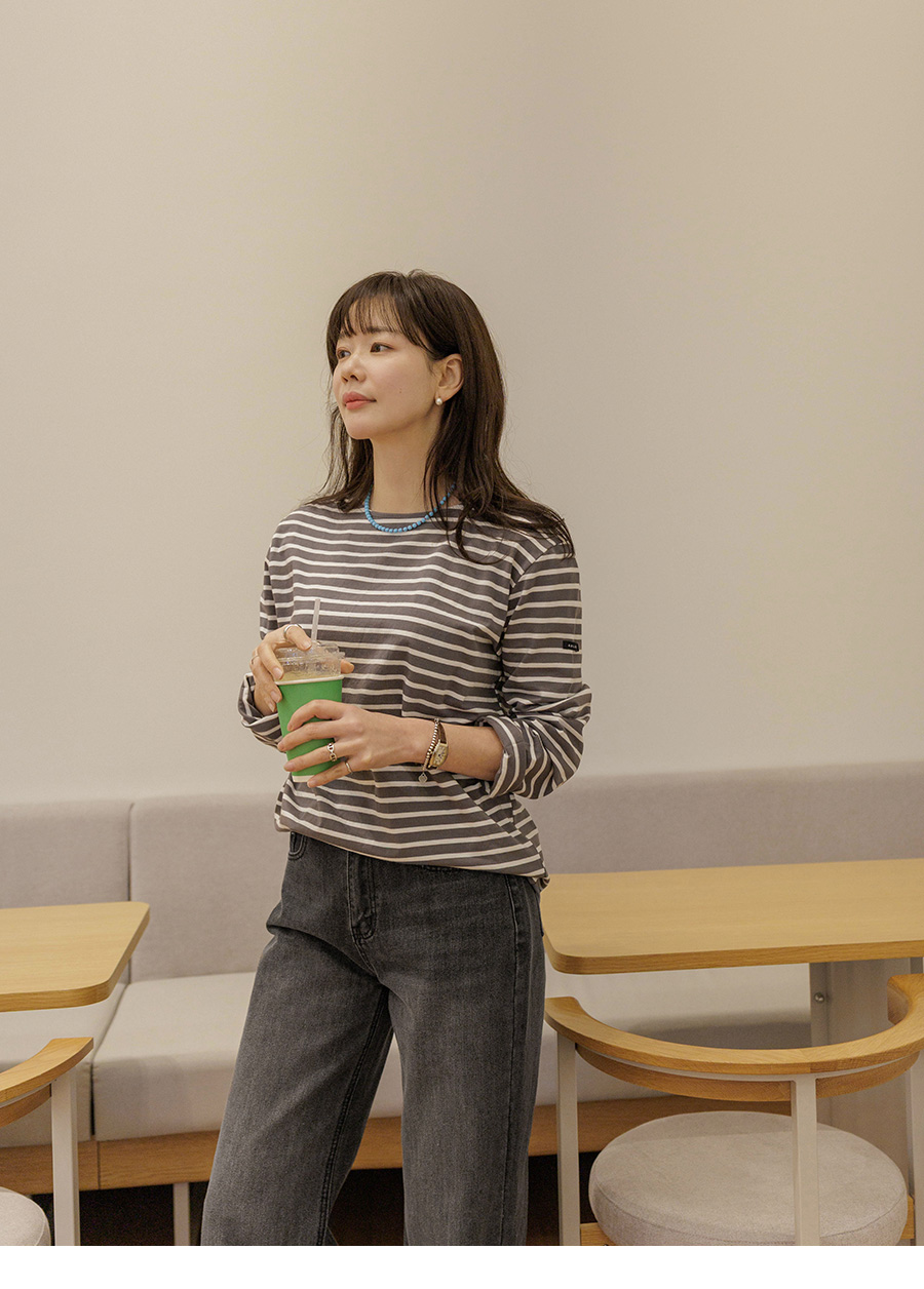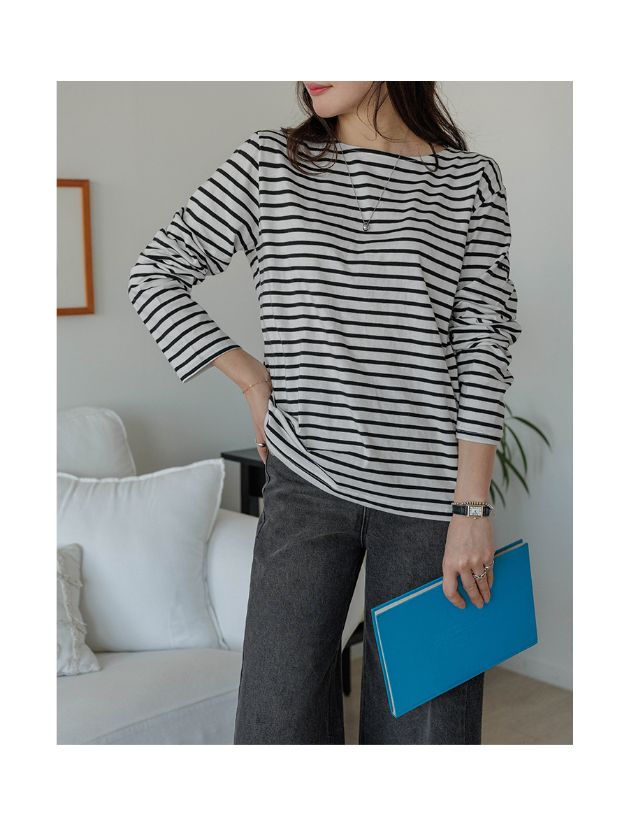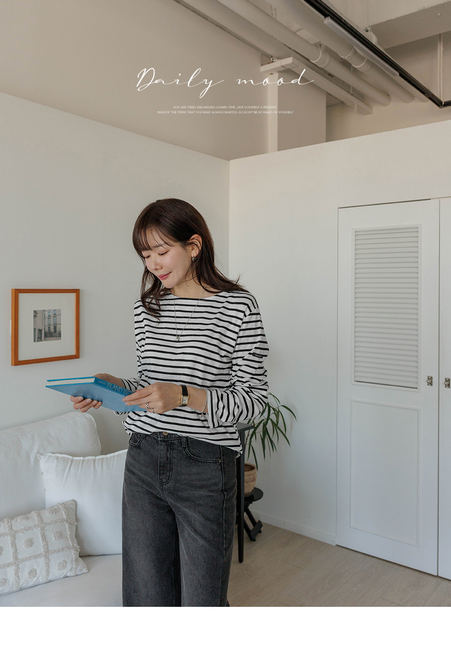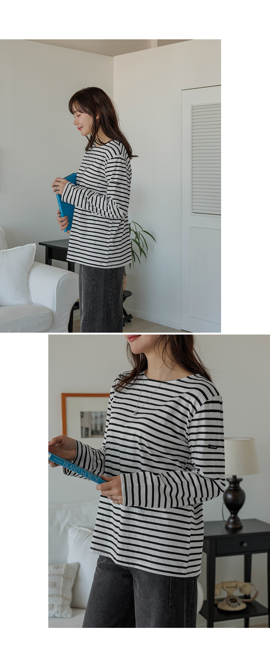 A neat and comfortable striped long-sleeved T-shirt made of sturdy cotton material that has been tumble-washed. A great daily key point. (6 colors)