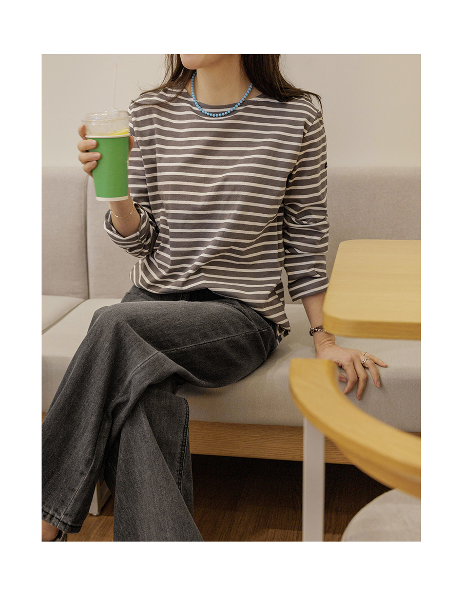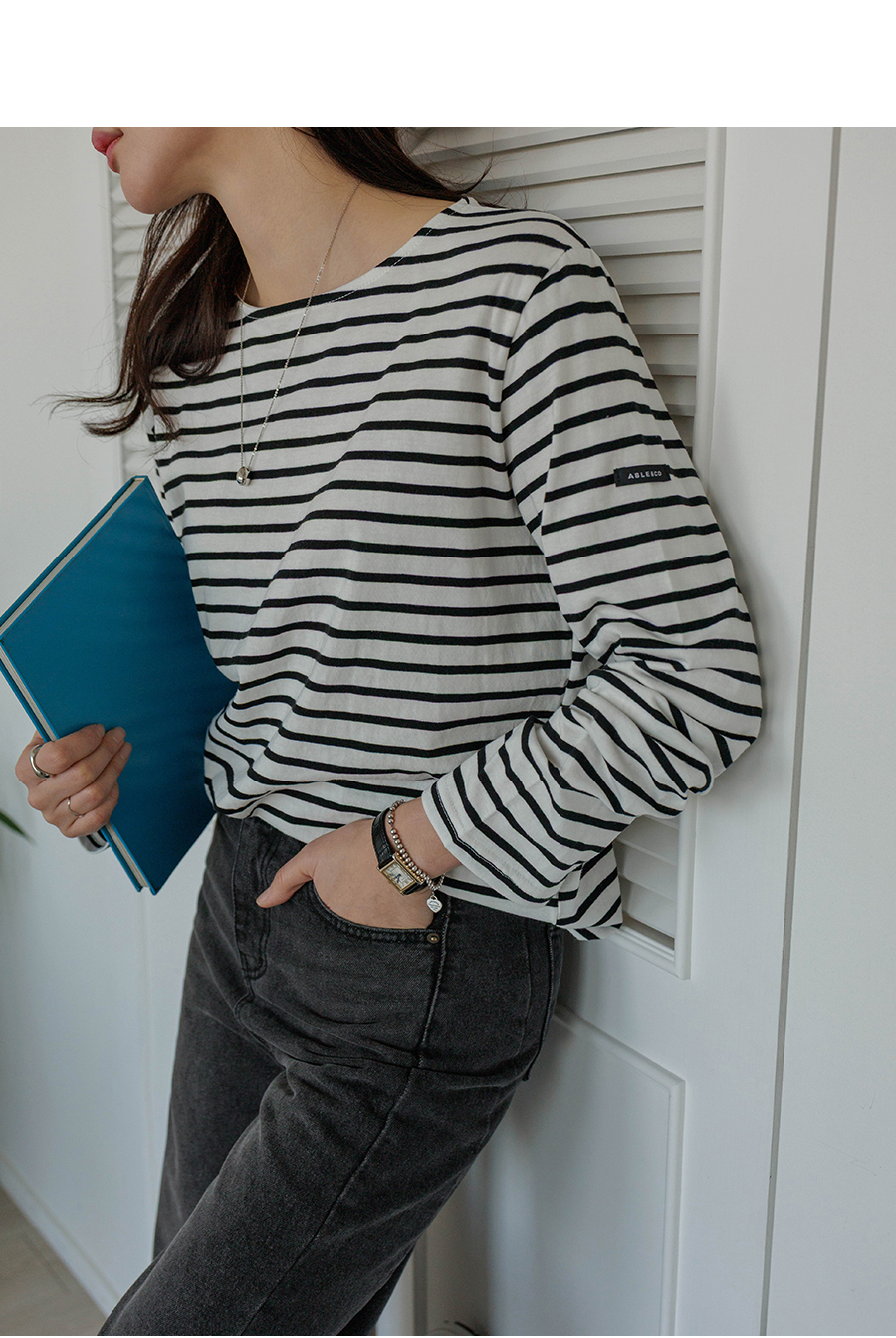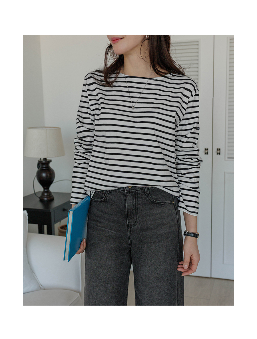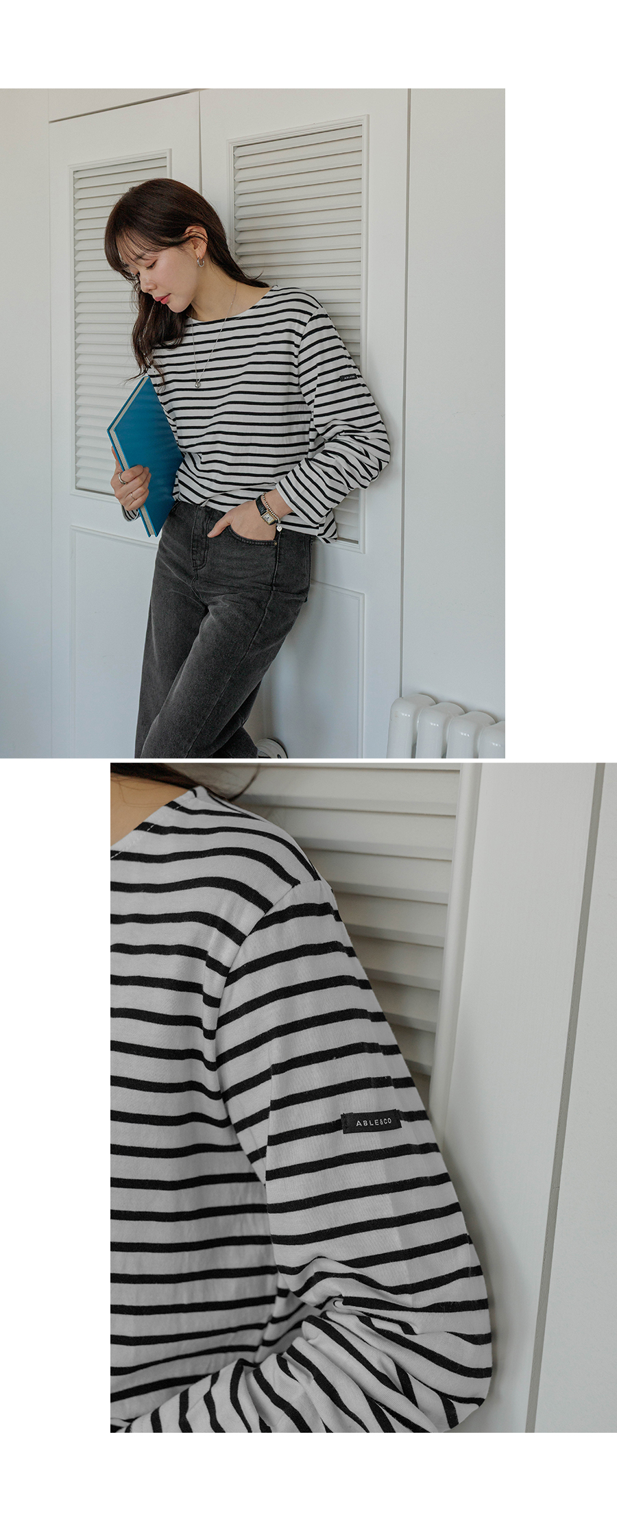 A neat and comfortable striped long-sleeved T-shirt made of sturdy cotton material that has been tumble-washed. A great daily key point. (6 colors)