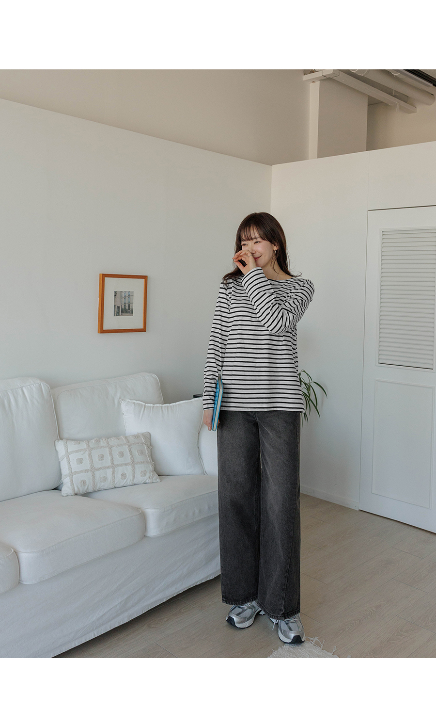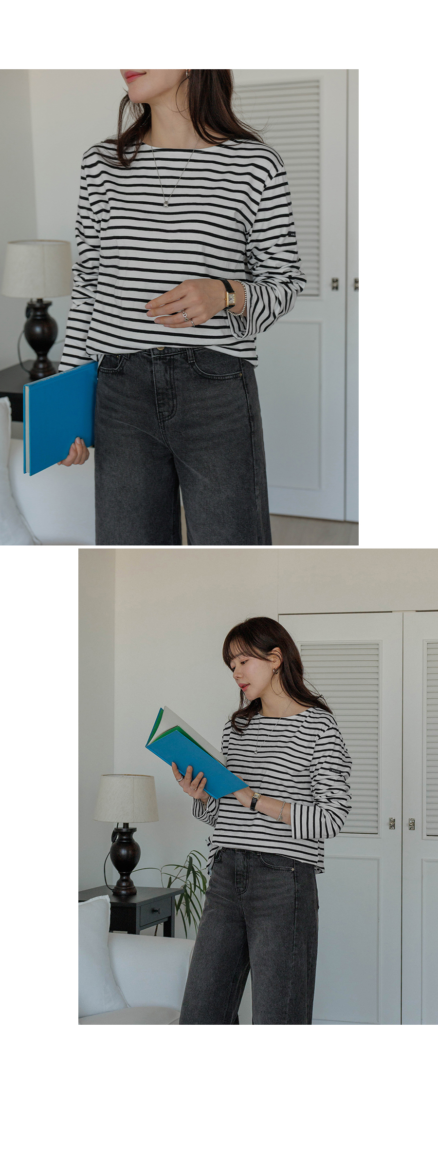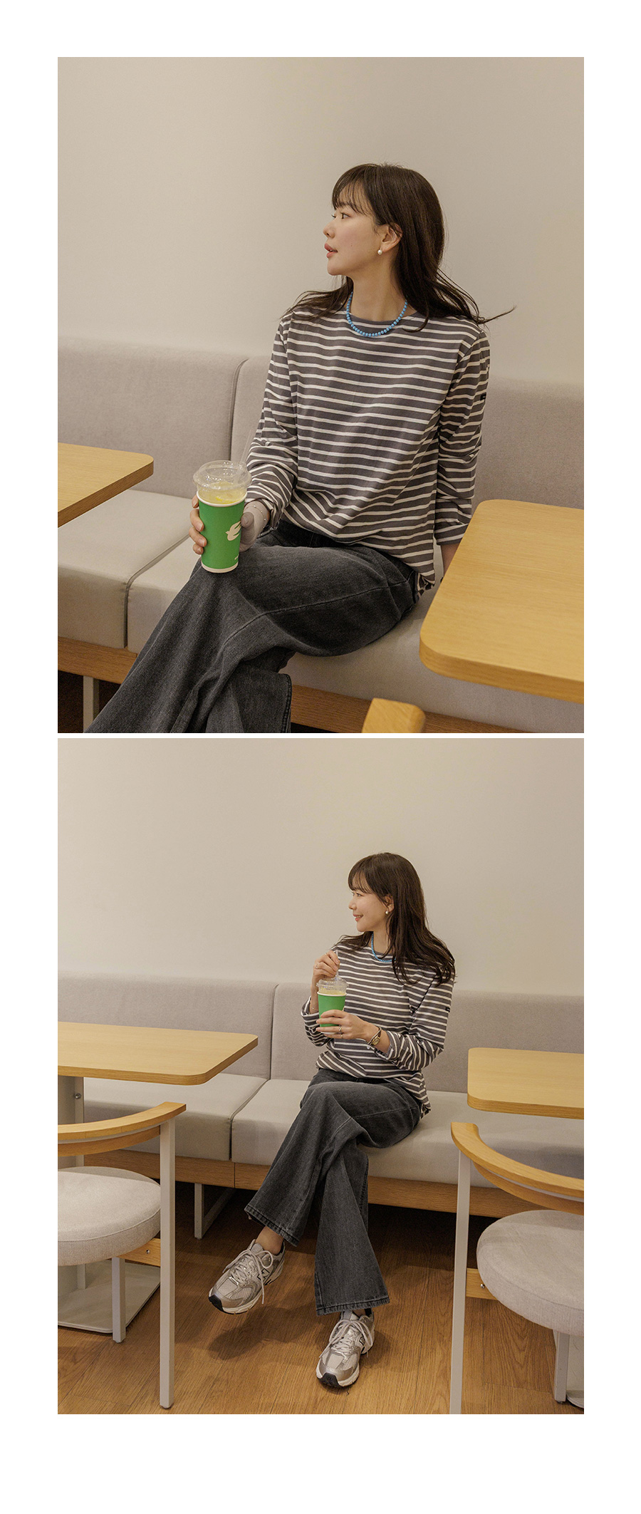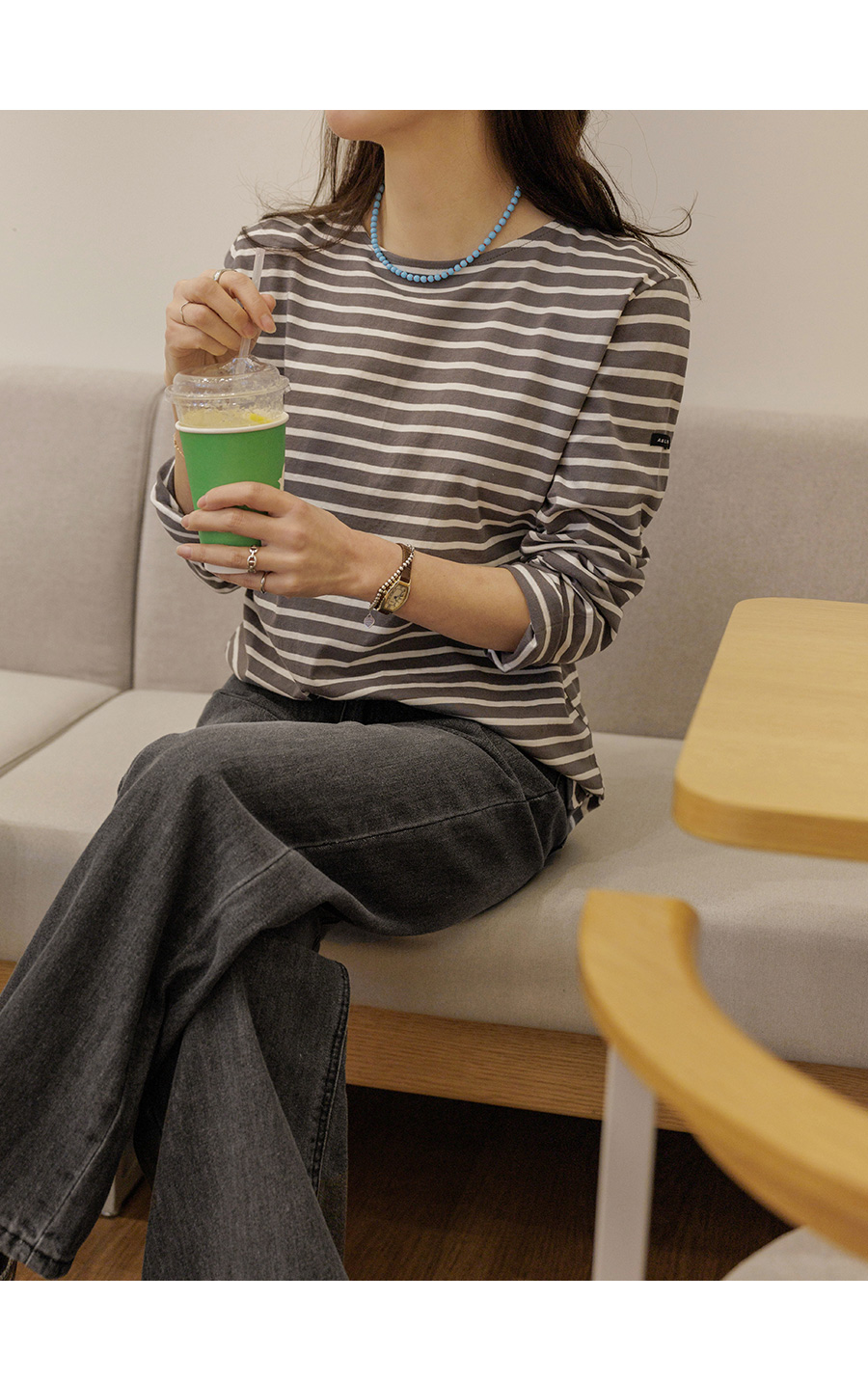 A neat and comfortable striped long-sleeved T-shirt made of sturdy cotton material that has been tumble-washed. A great daily key point. (6 colors)
