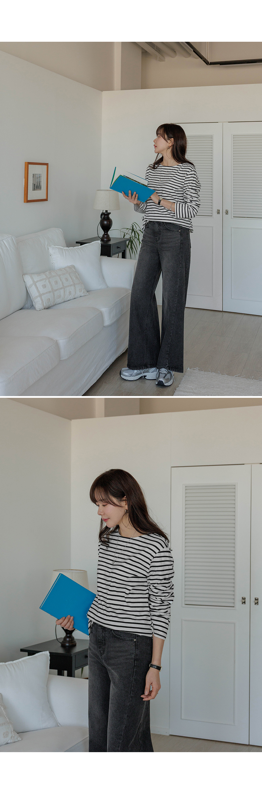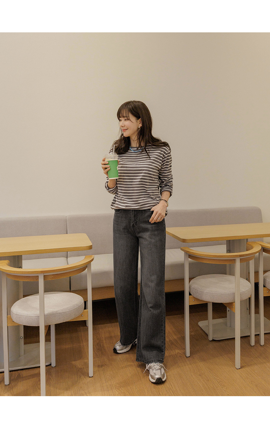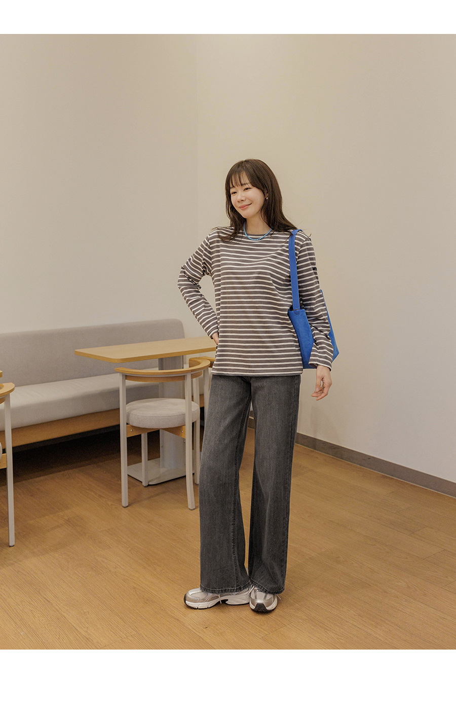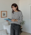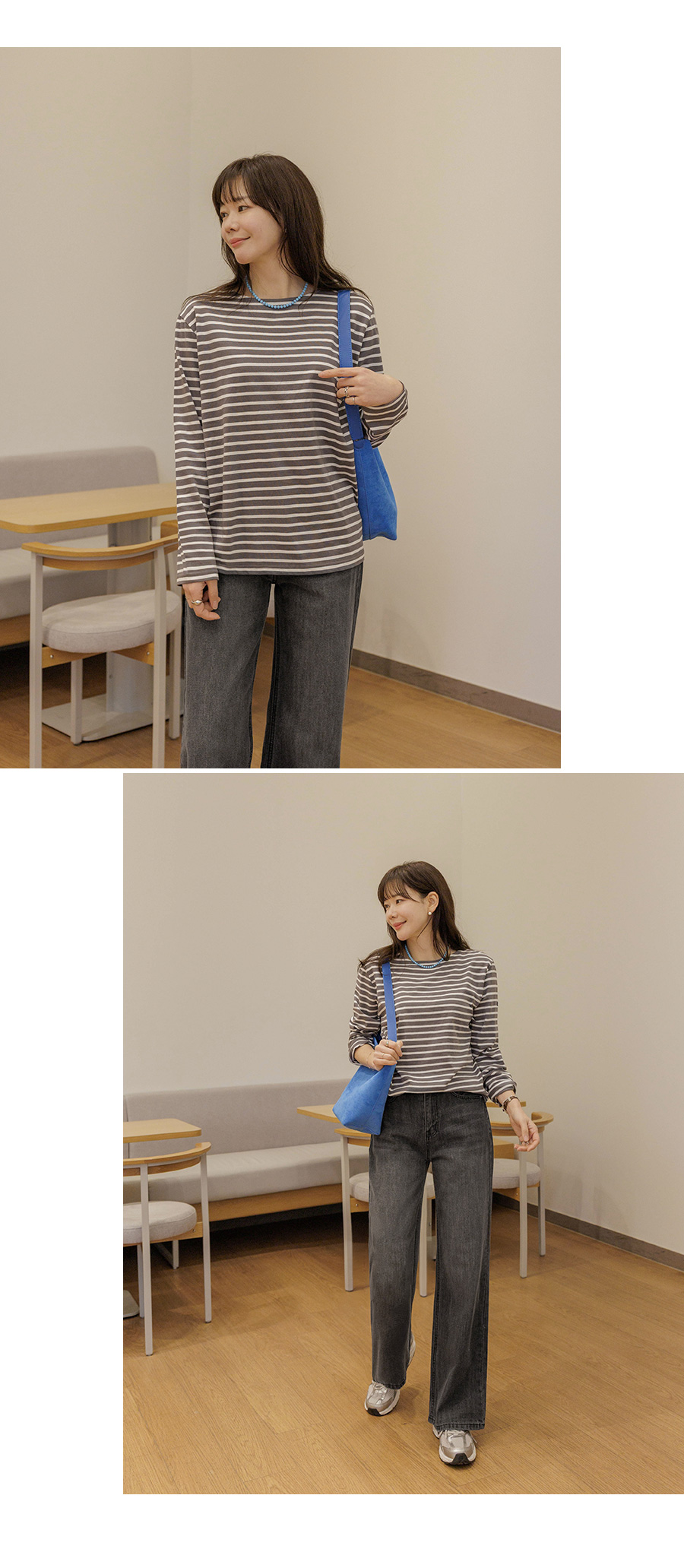 A neat and comfortable striped long-sleeved T-shirt made of sturdy cotton material that has been tumble-washed. A great daily key point. (6 colors)