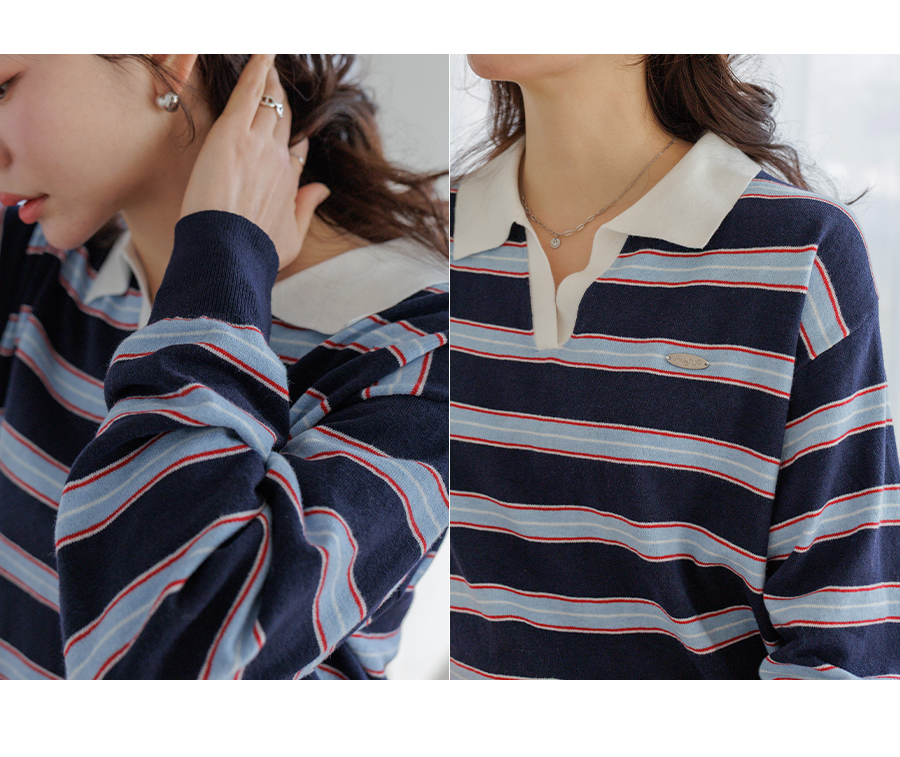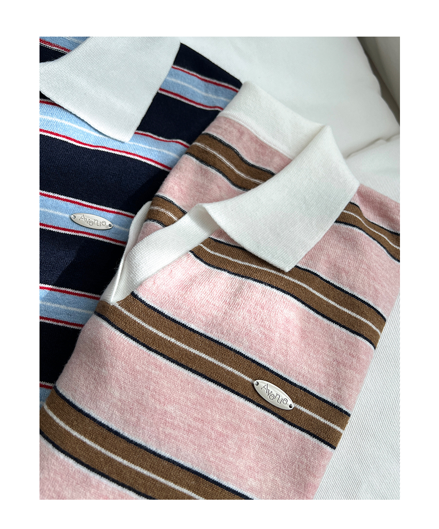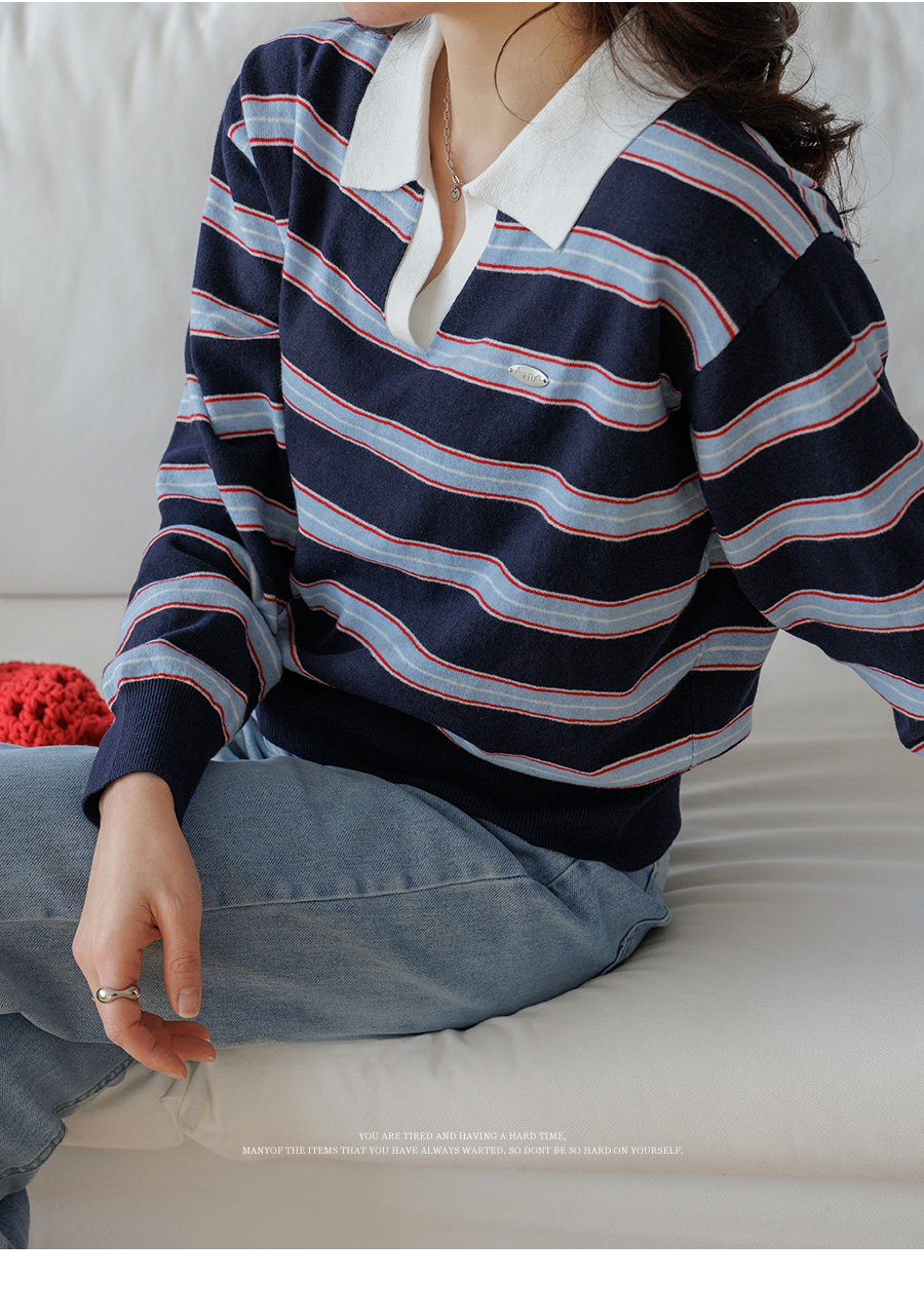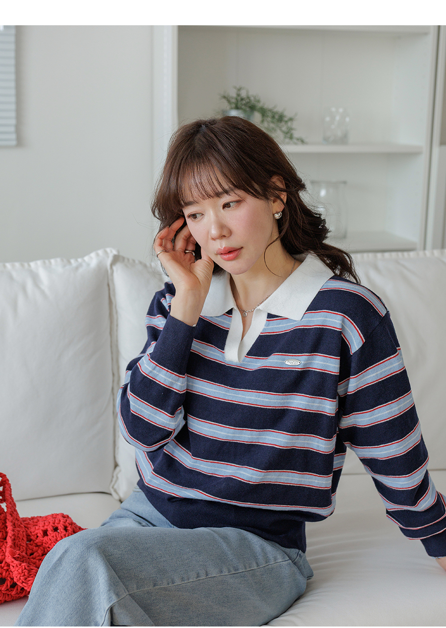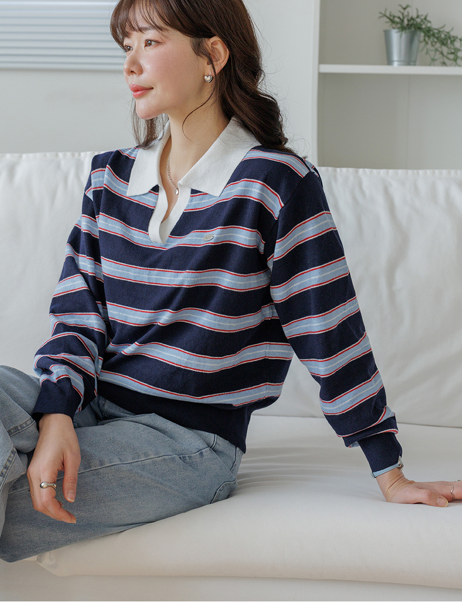 Border stripe collar knit
