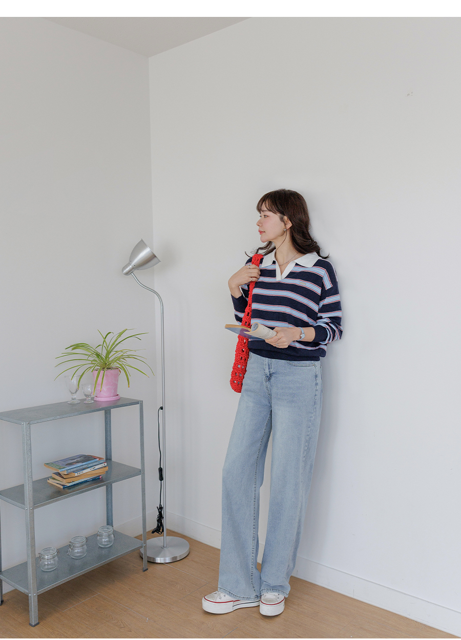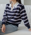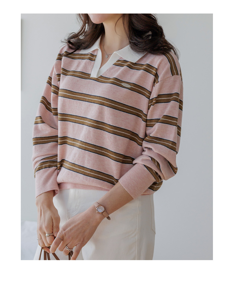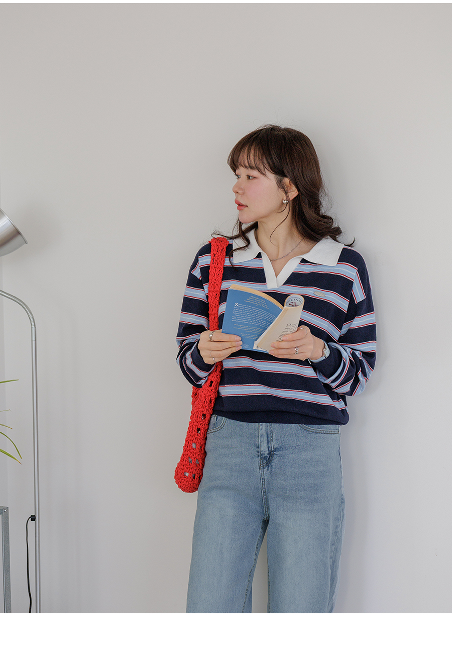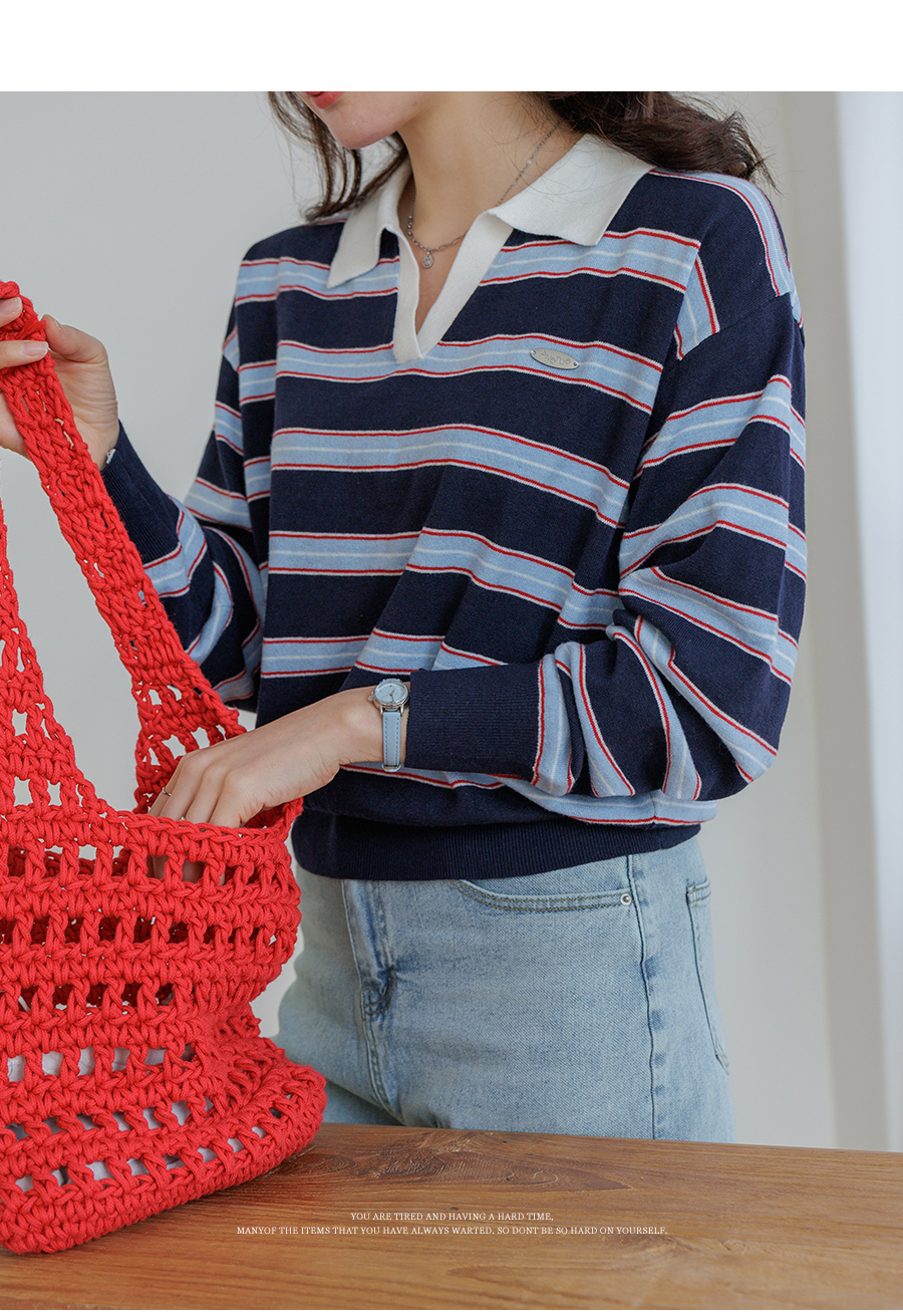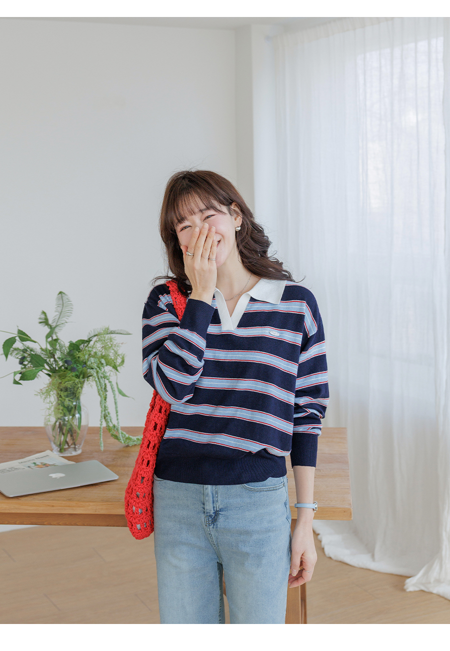 Border stripe collar knit