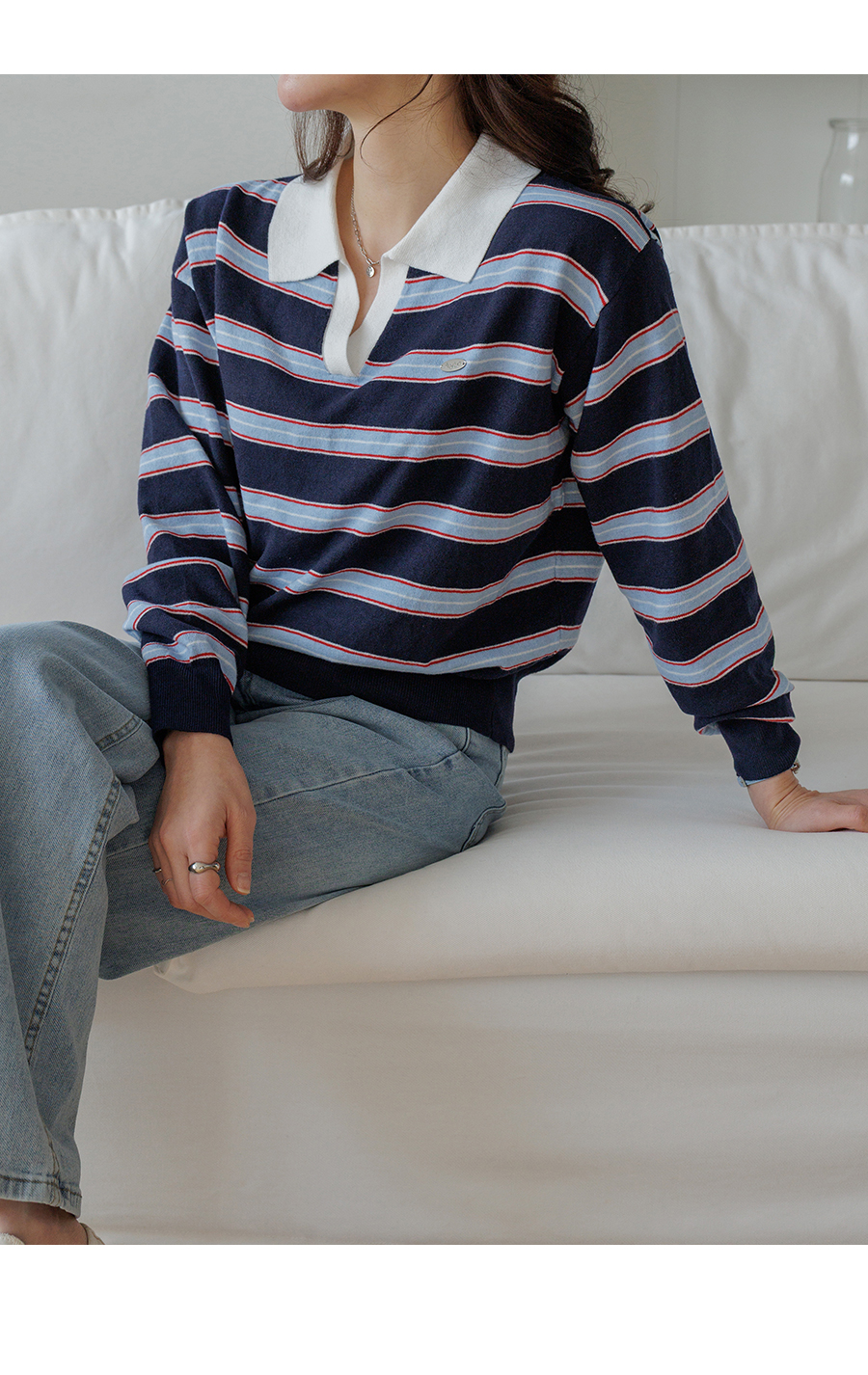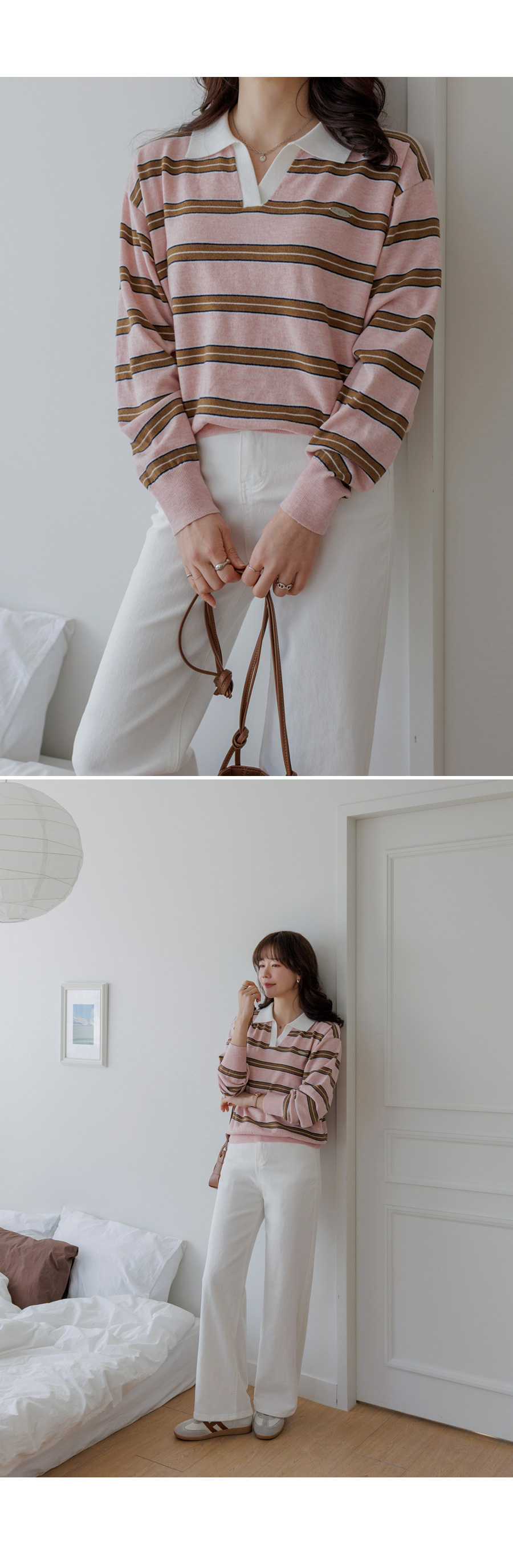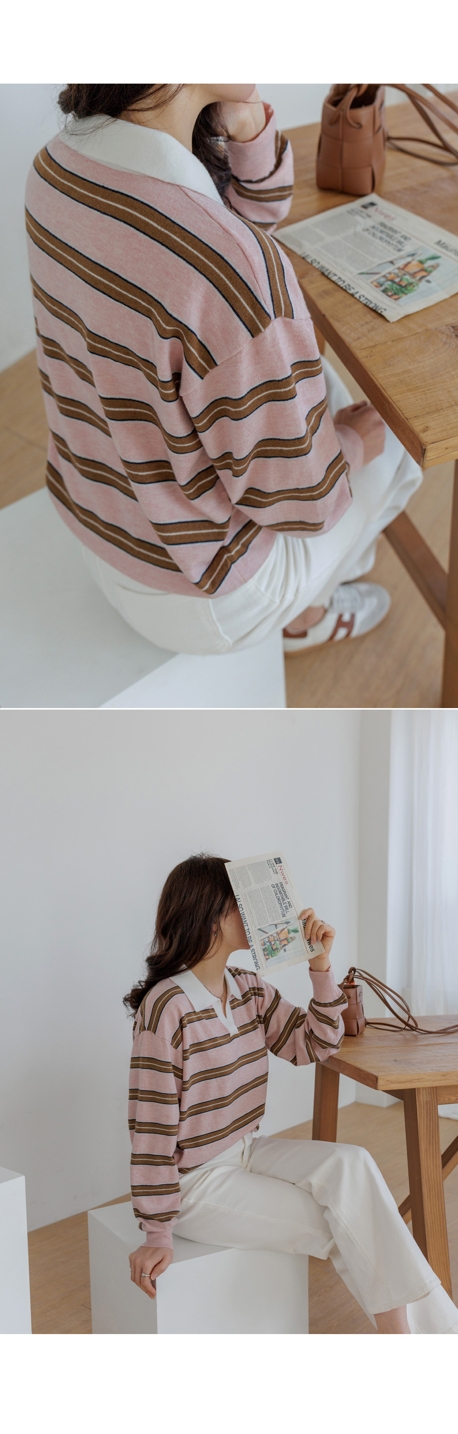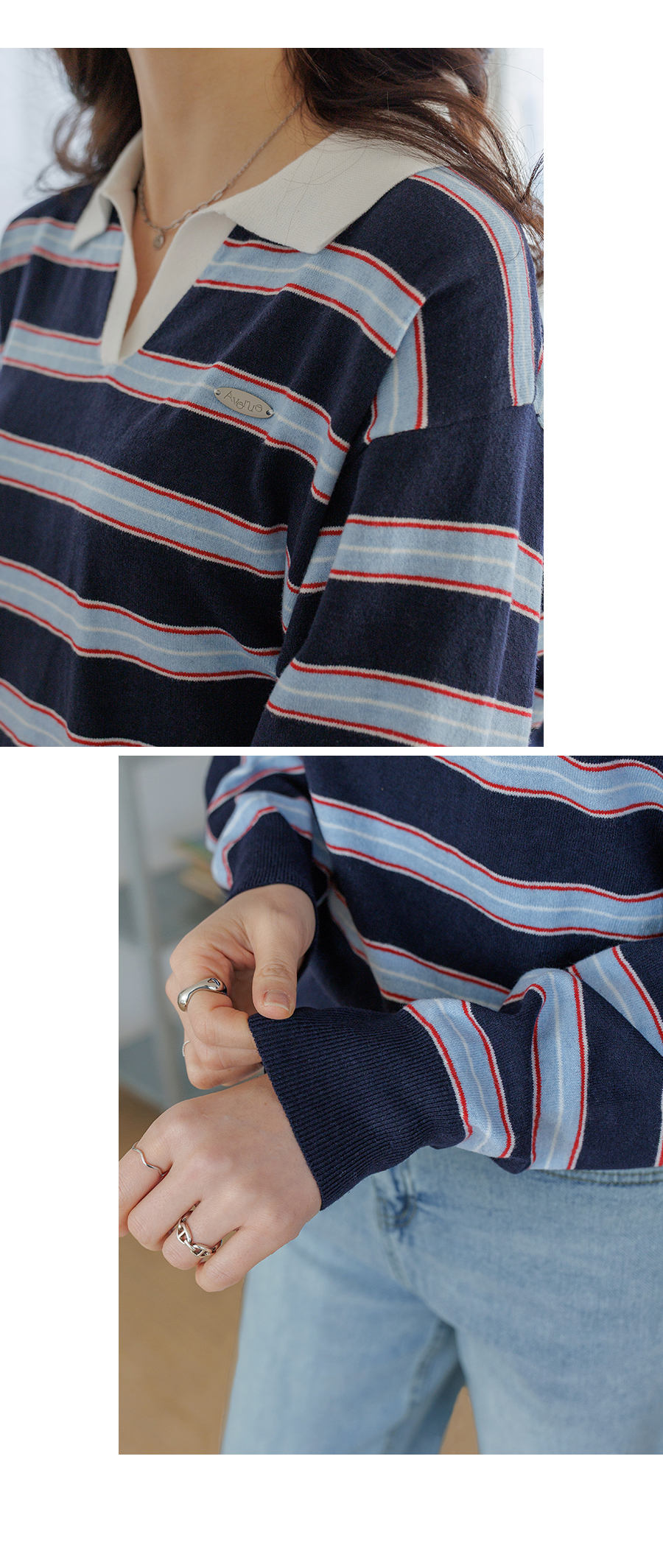 Border stripe collar knit