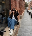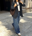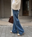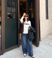 와이드 데님이지만 절개 라인 덕분에