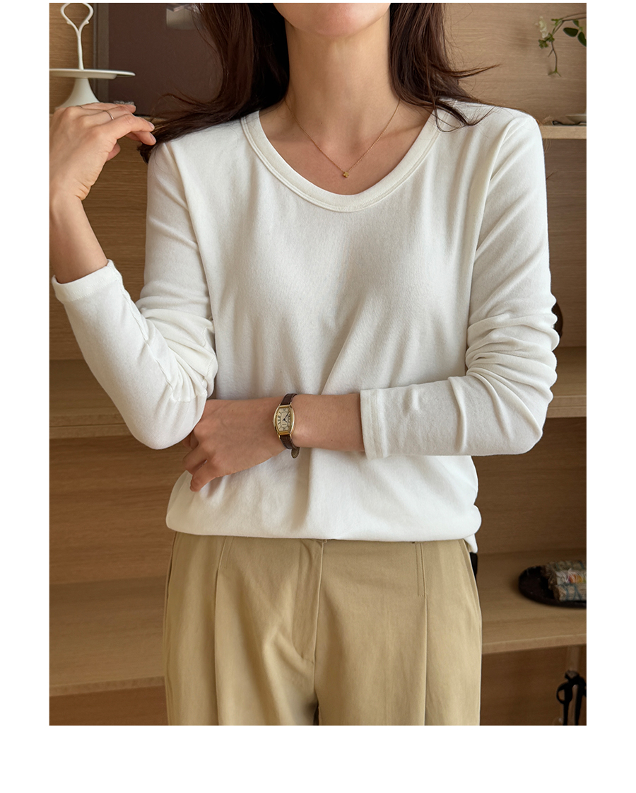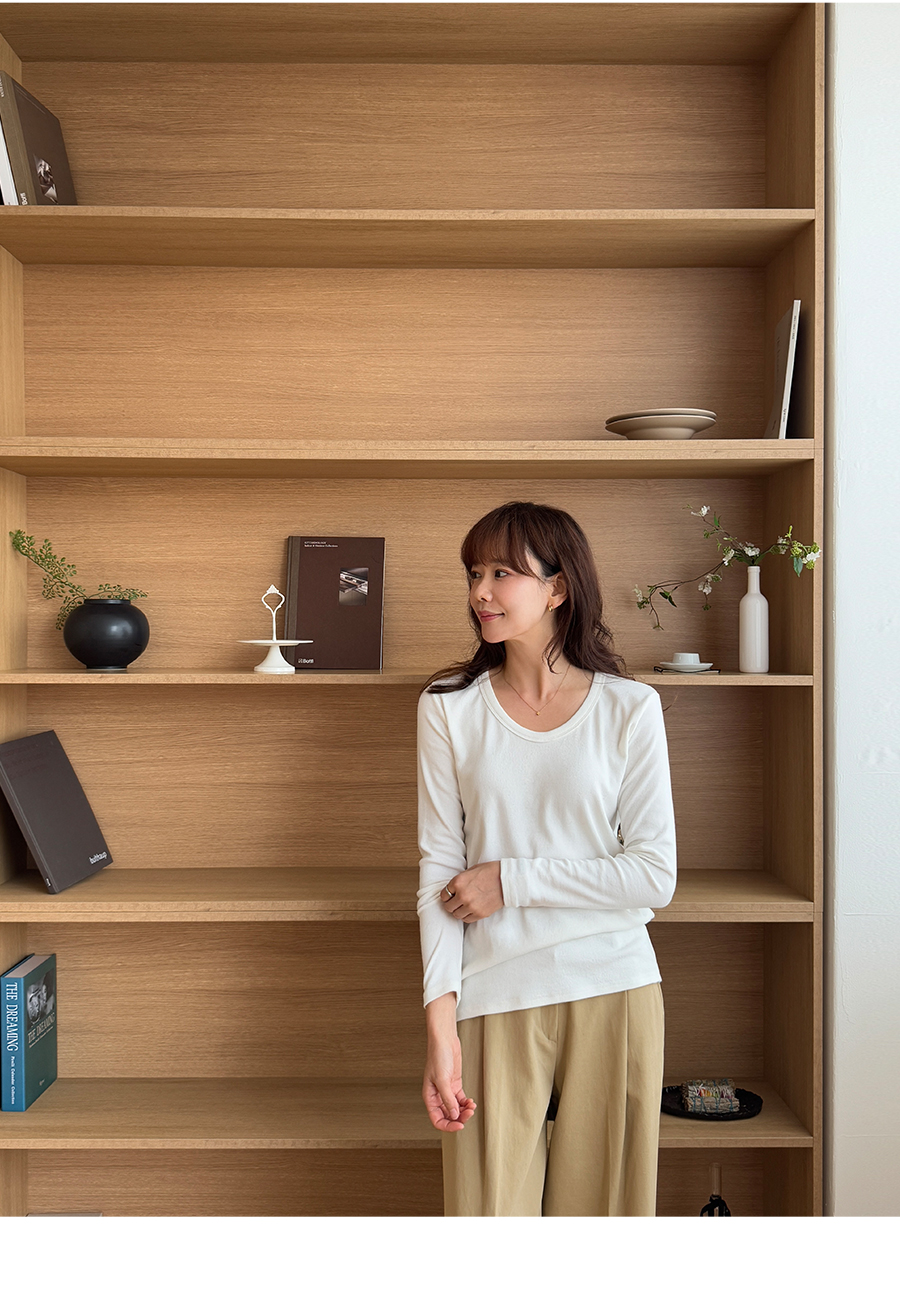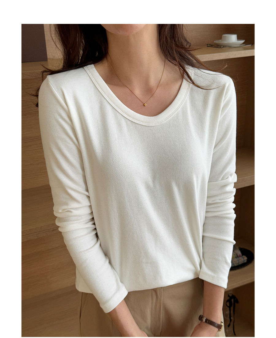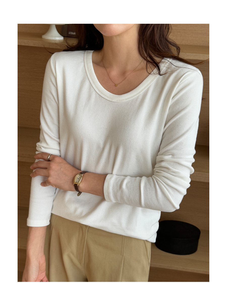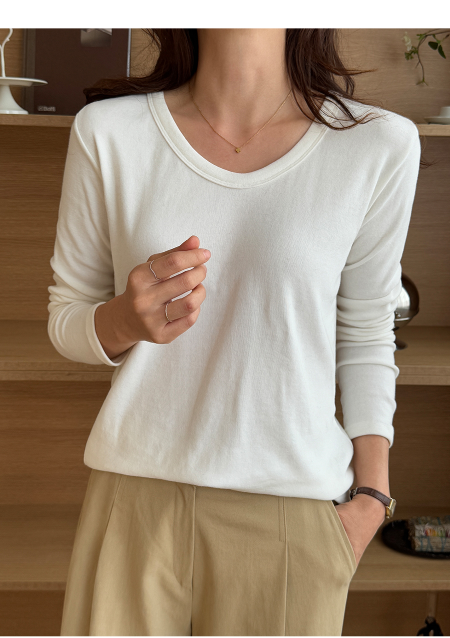 Wide U-neck long-sleeved T-shirt with a loose fit