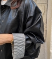 A leather jacket with a soft, textured eco leather sleeve color scheme that naturally adds style (2 colors) *Sent sequentially on Monday, October 27th*