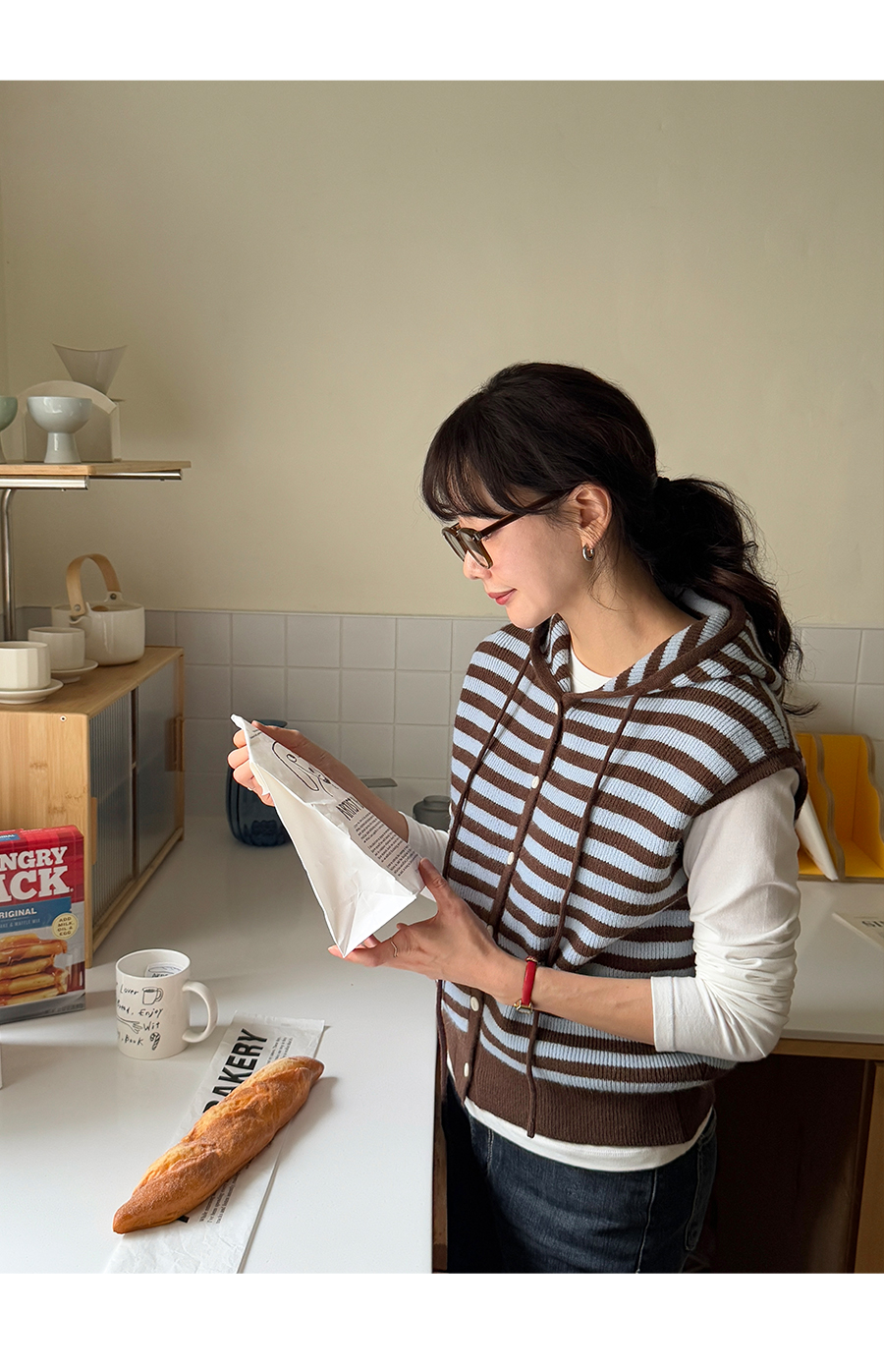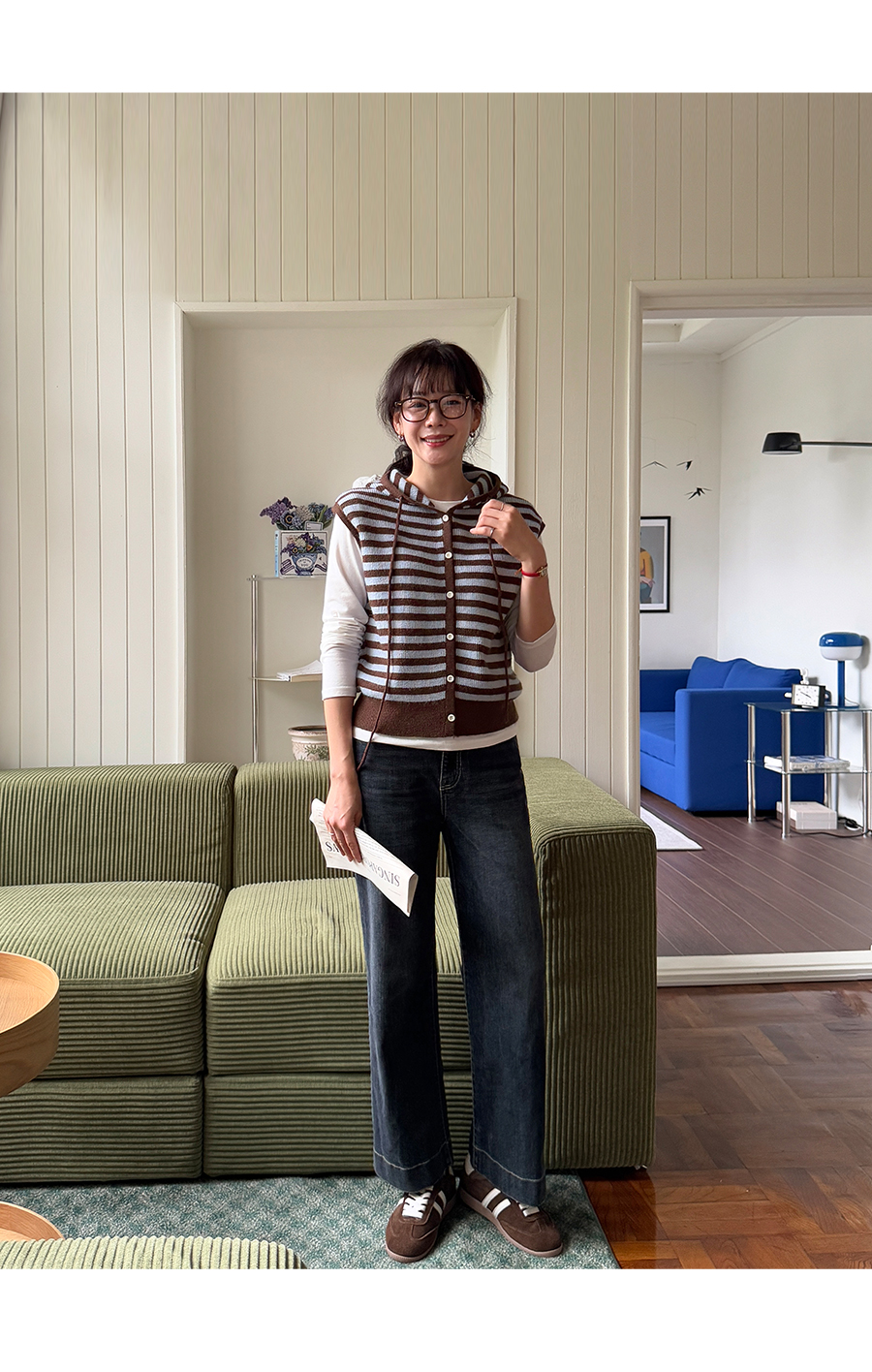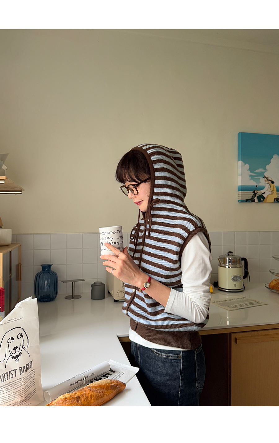 A Hooded Knit Vest that's perfect for layering anywhere. Hairy knit yarn creates a cozy mood! (4 colors)