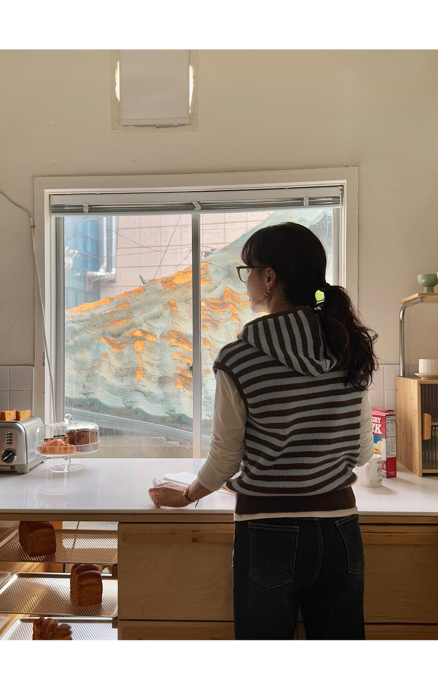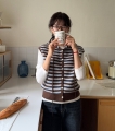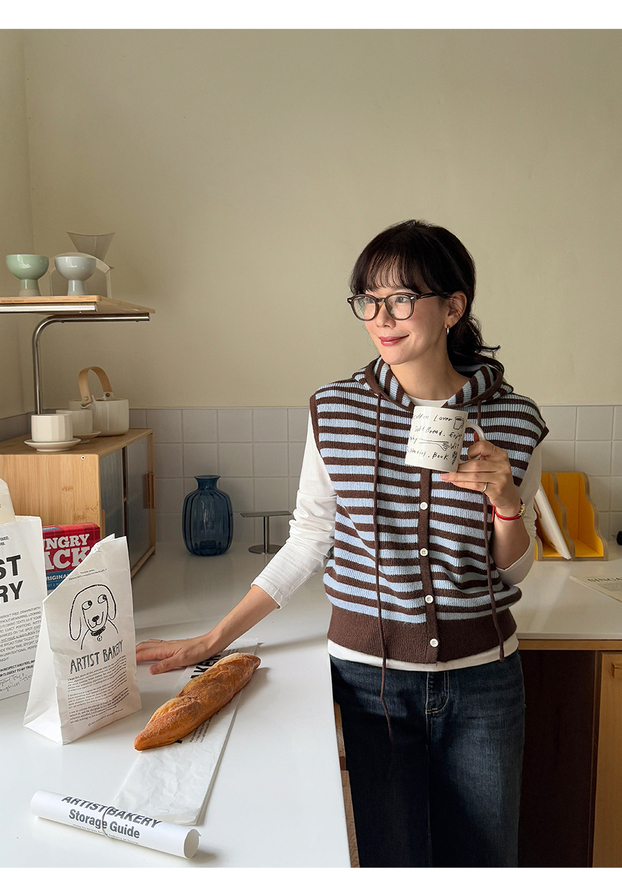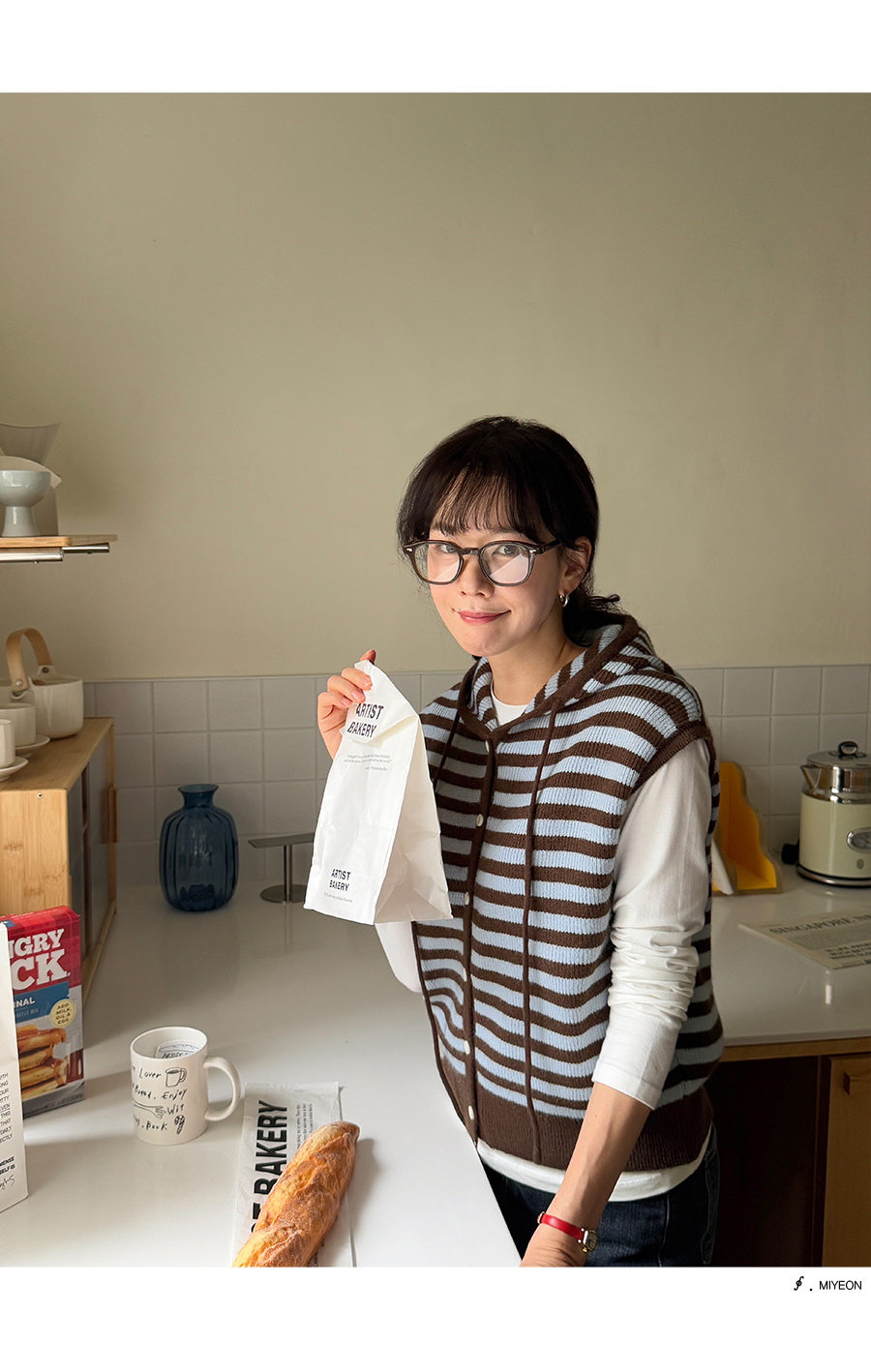 A Hooded Knit Vest that's perfect for layering anywhere. Hairy knit yarn creates a cozy mood! (4 colors)