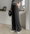 Warm pin-tuck fleece wide slacks