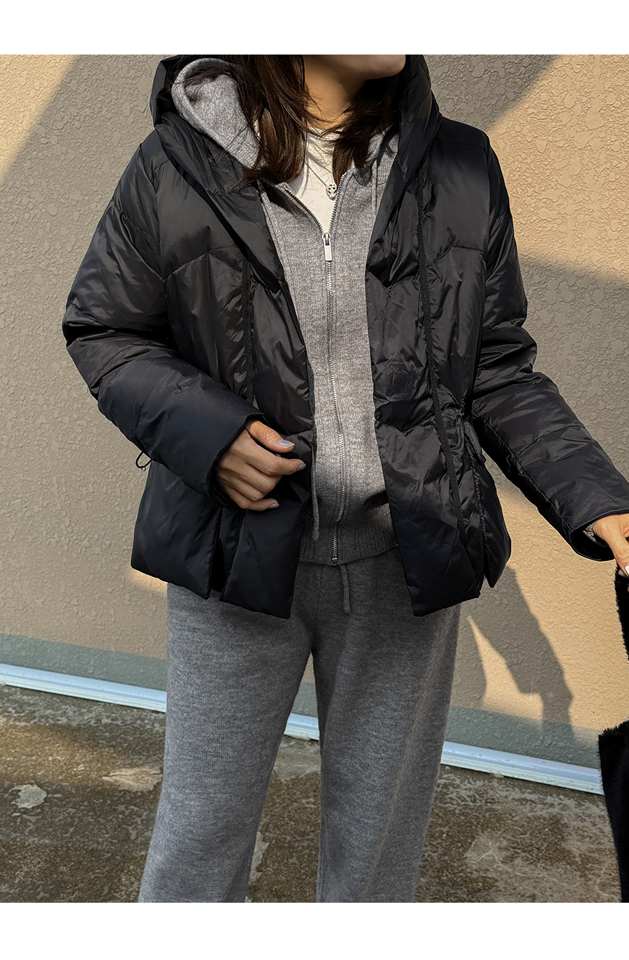 • Modern and chic quilting design! Thick fabric and a hood keep you warm even in cold weather! (2 colors)