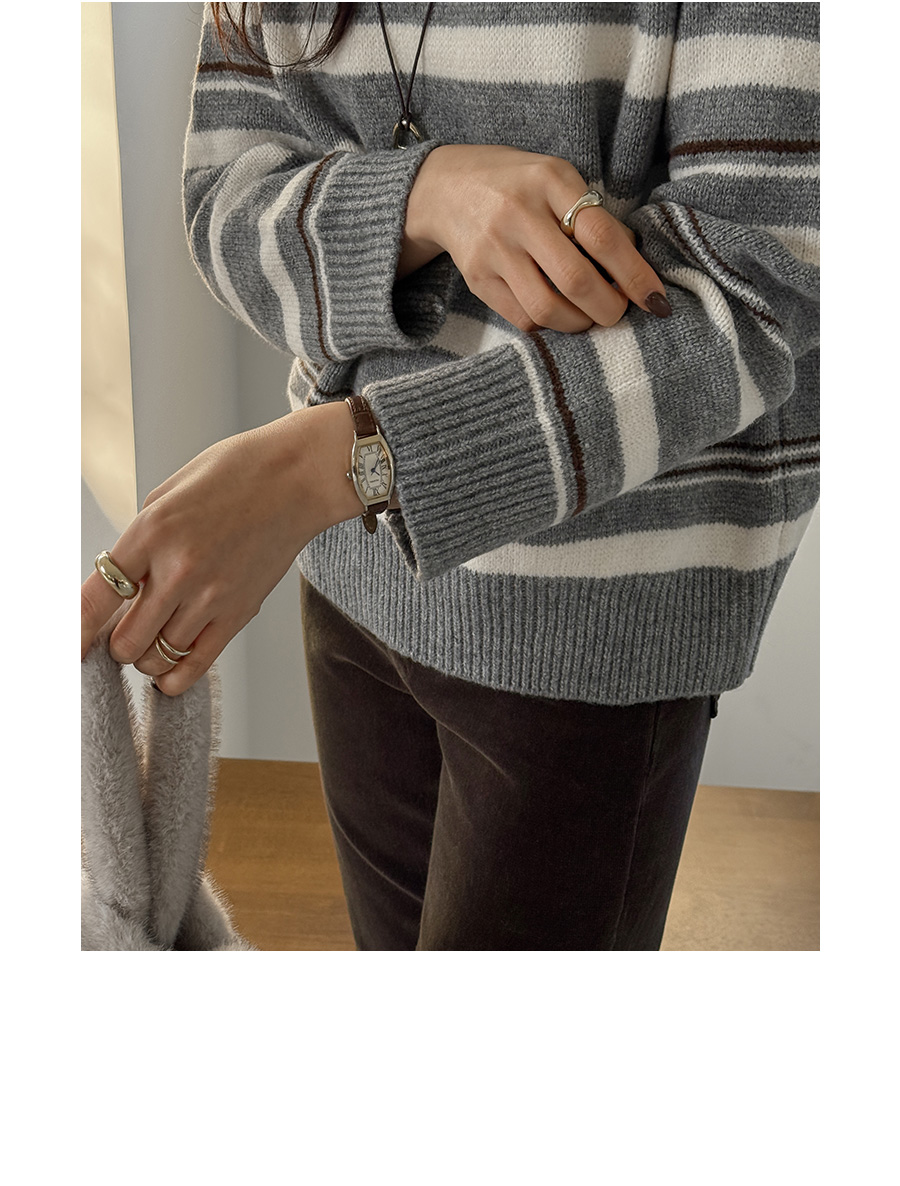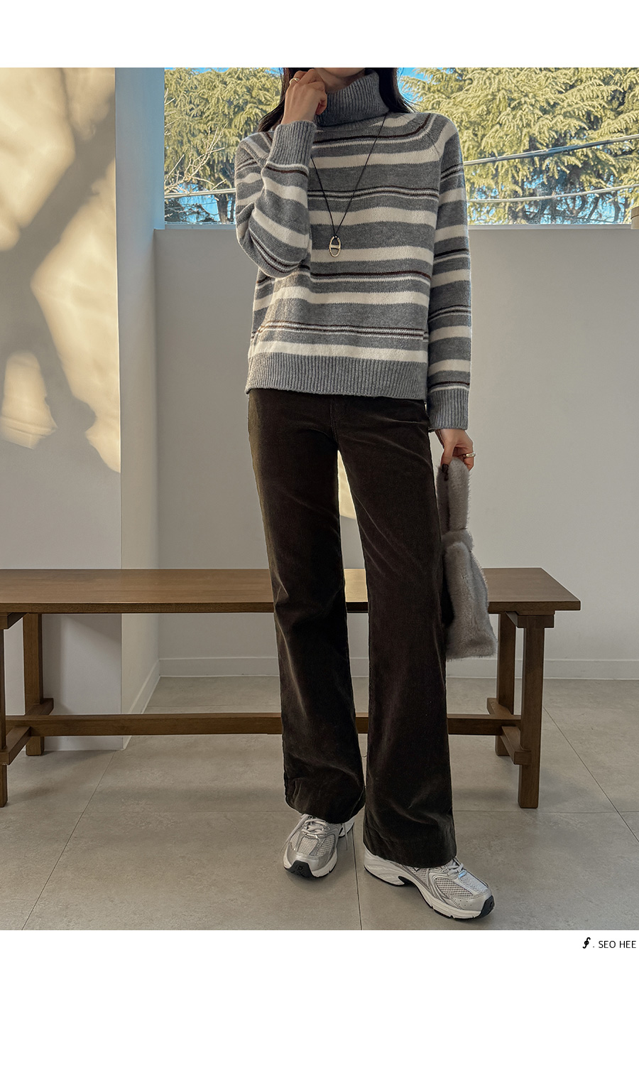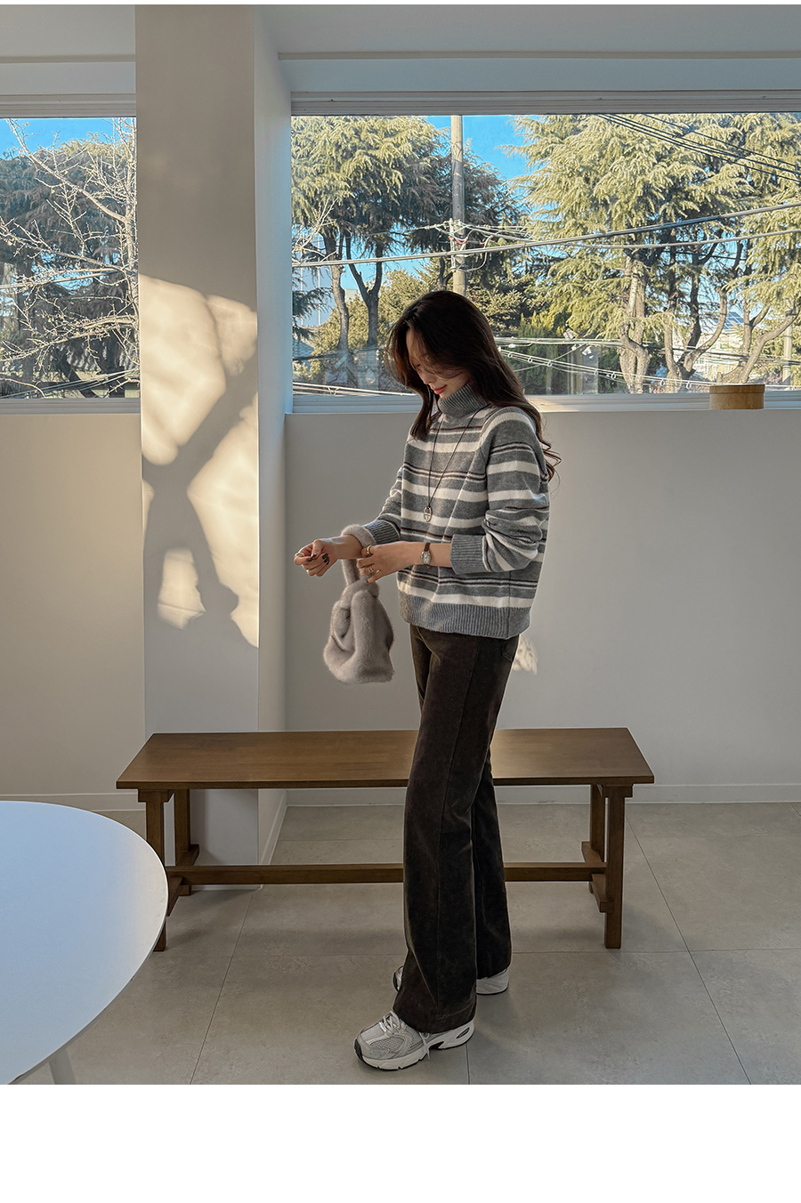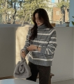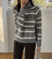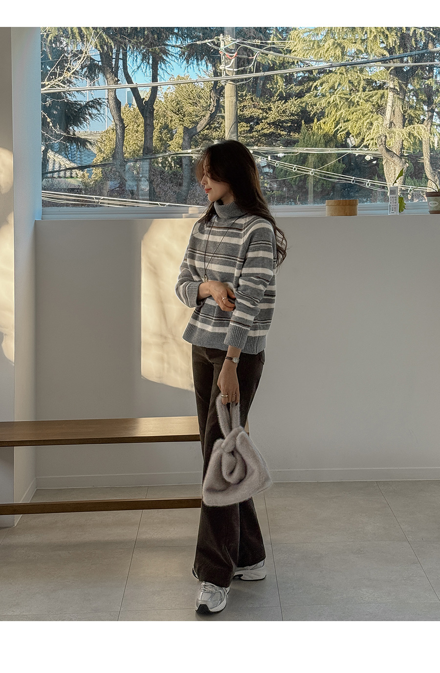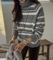 A turtleneck sweater with delicately colored stripes that provides warmth without being stuffy! (3 colors)