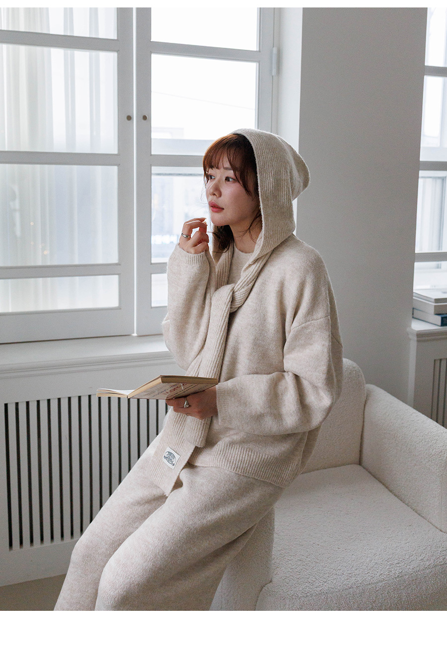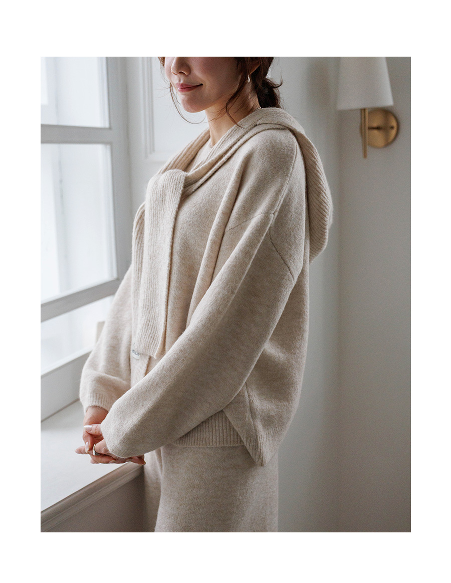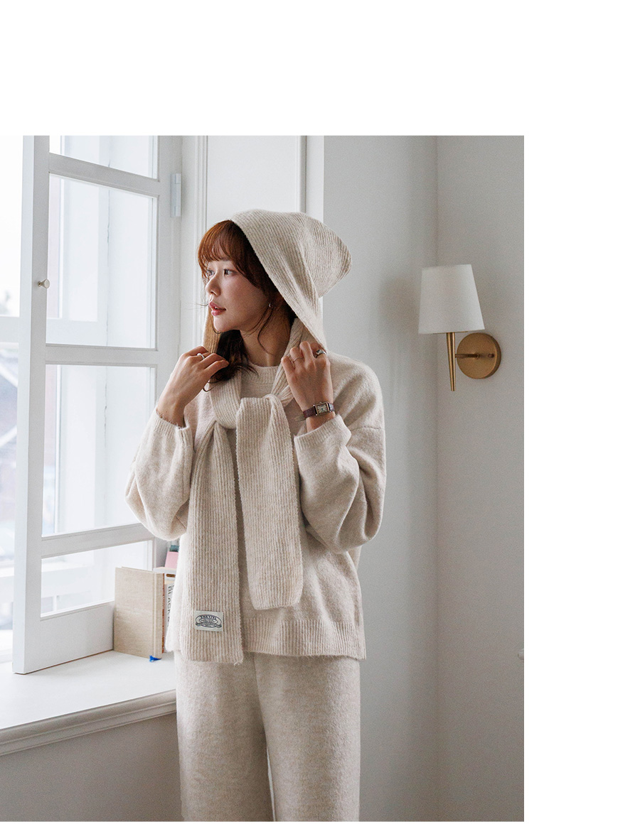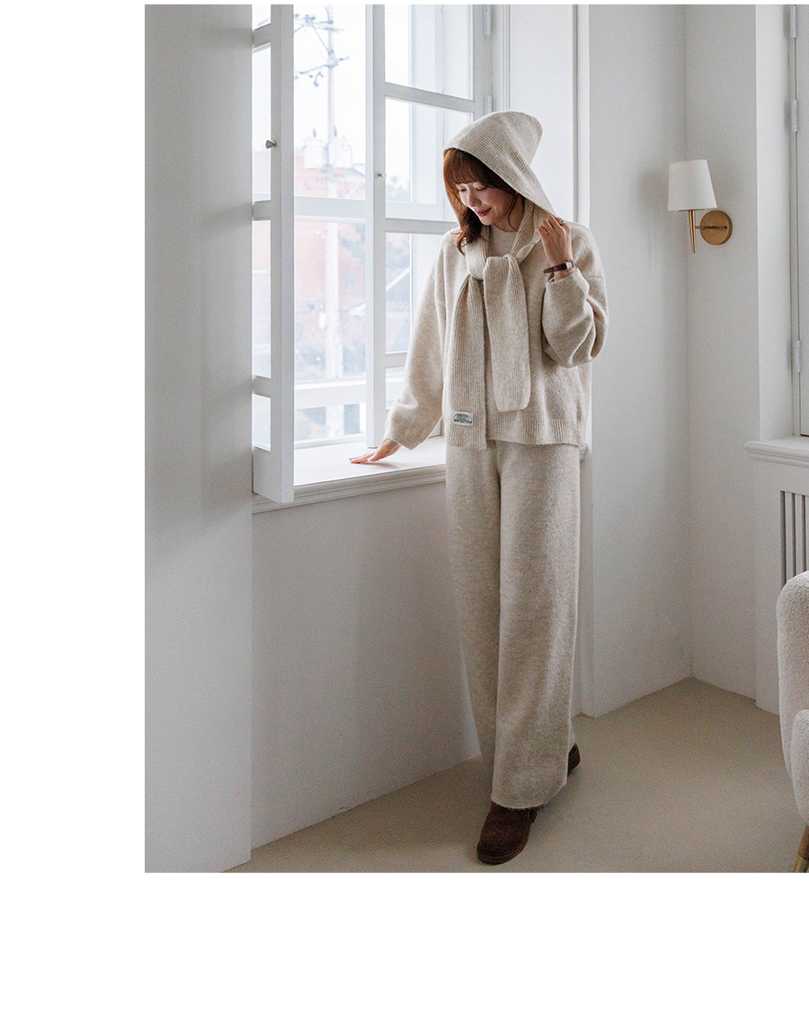 Complete your winter look with this hooded muffler/knit/pants set. ★ Top and bottom can be worn alone, too! (3 colors)