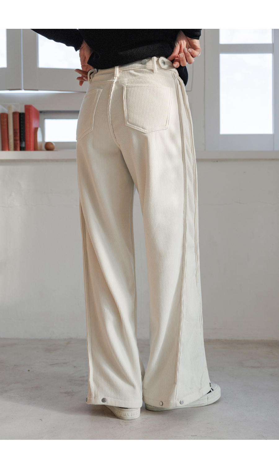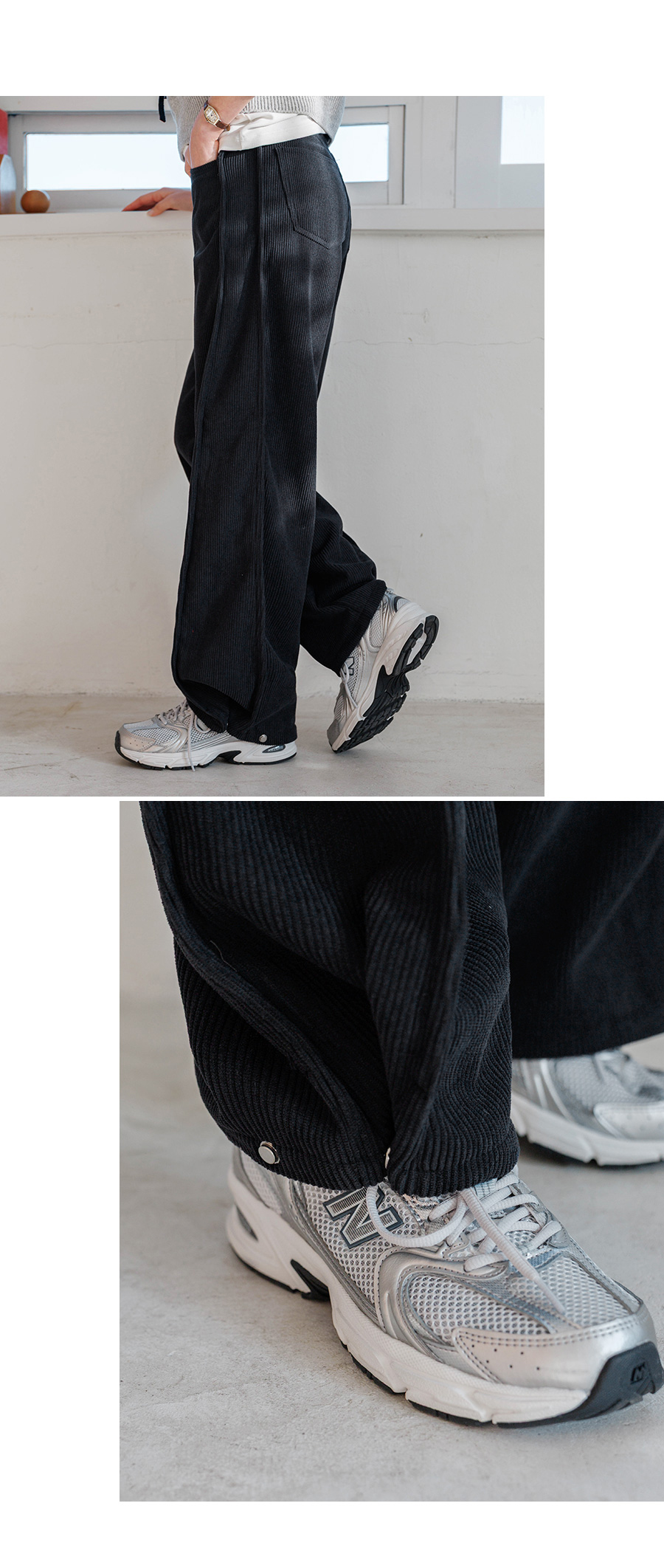 ✓ 두 가지 핏으로 연출 되는 밑단 스냅 버튼