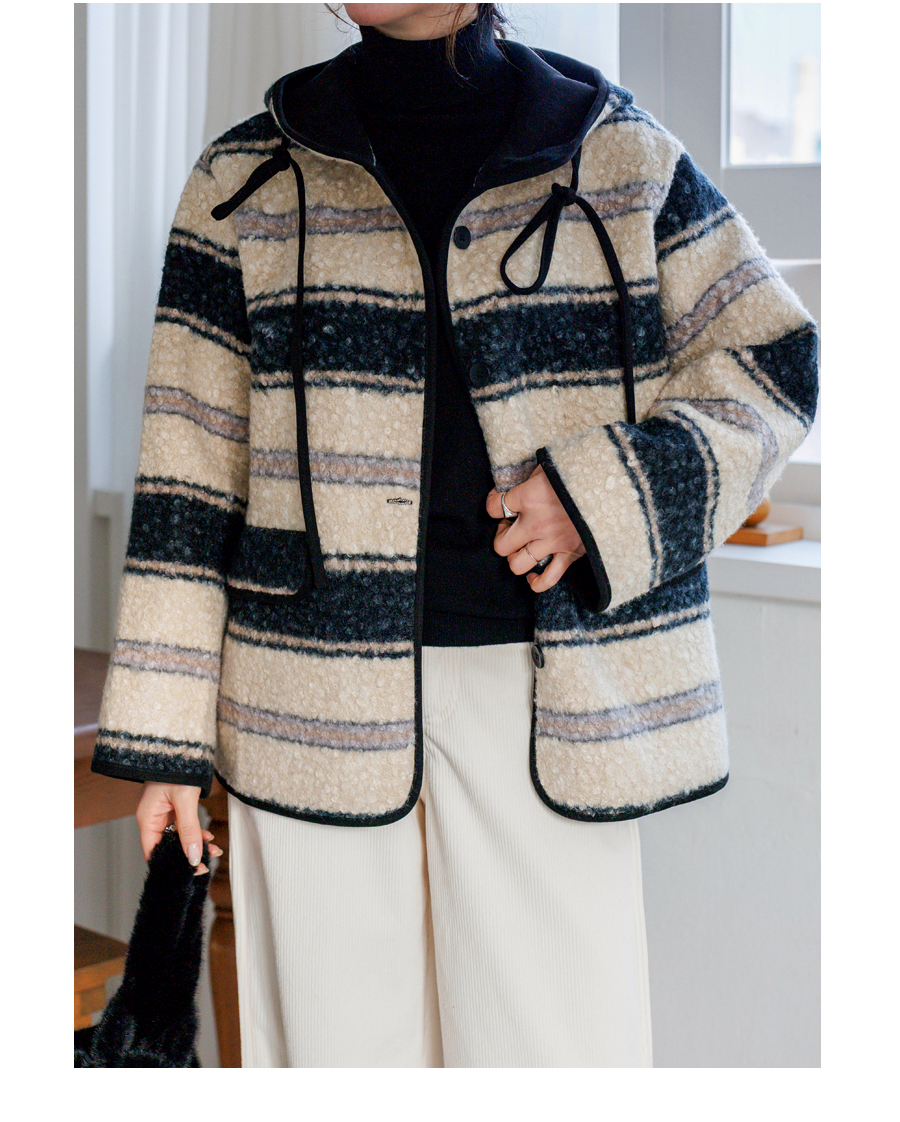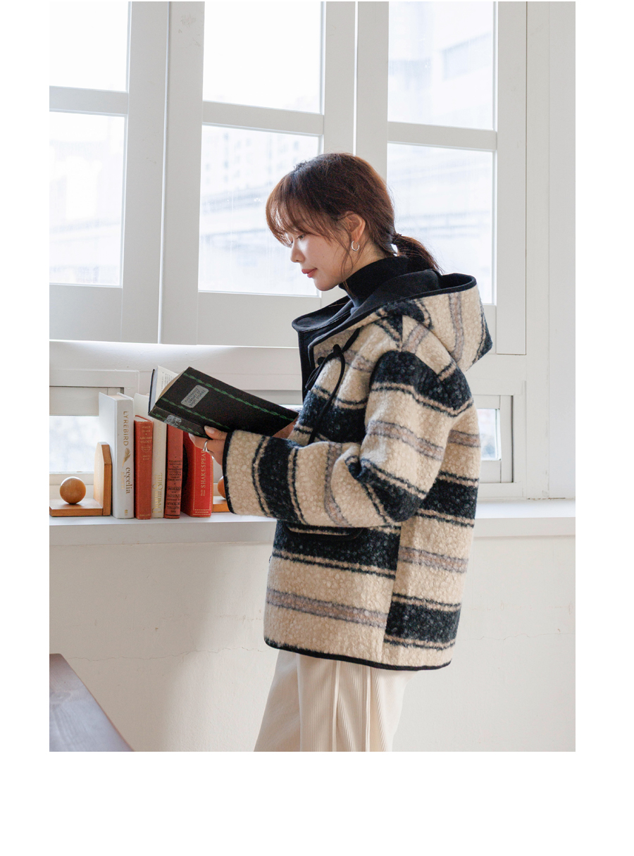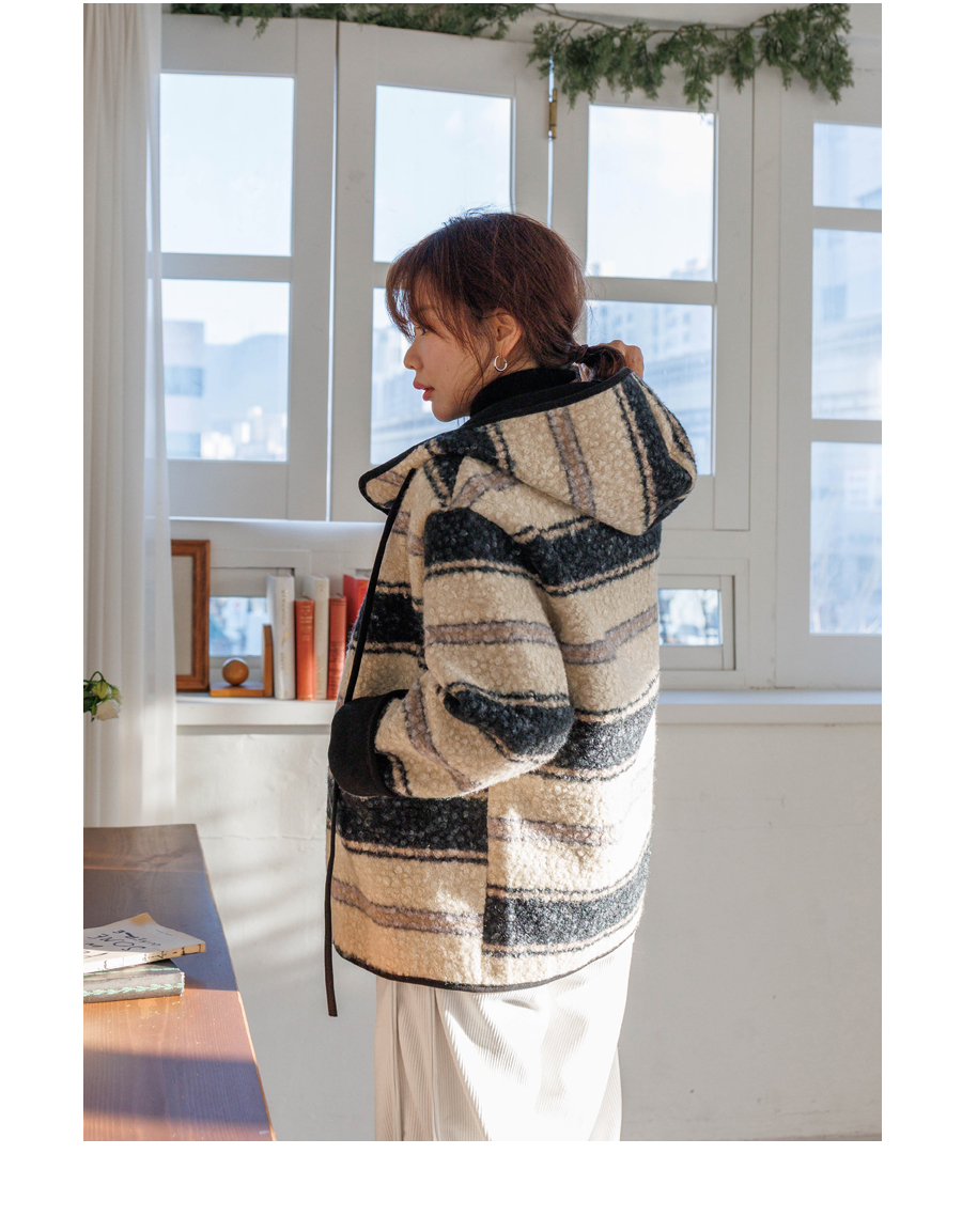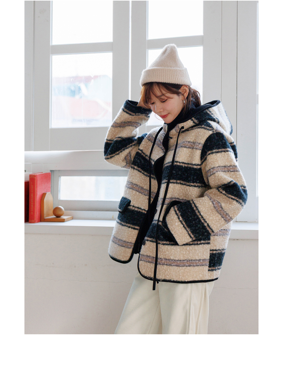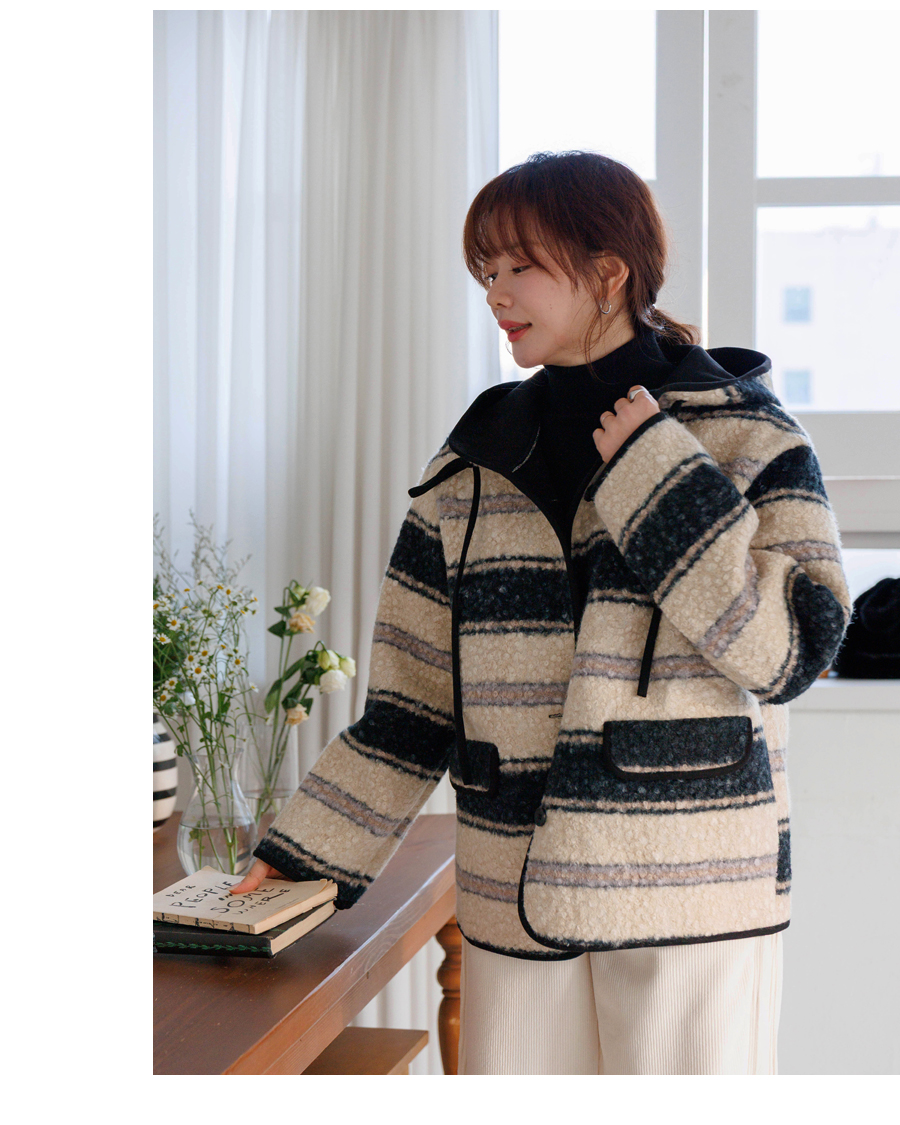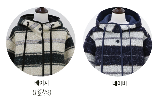 컬러 조합이 세련된 부클 후드 점퍼에요