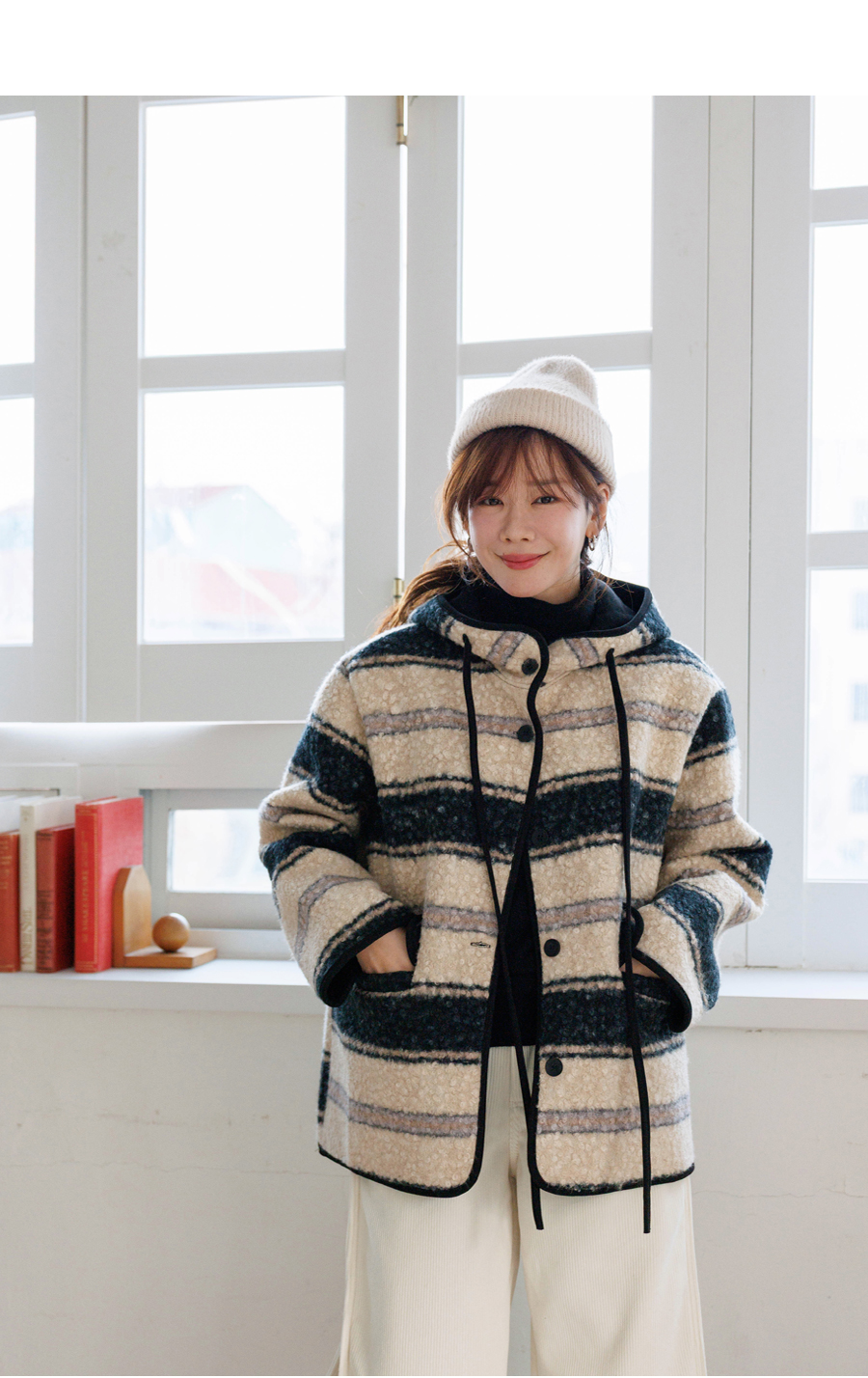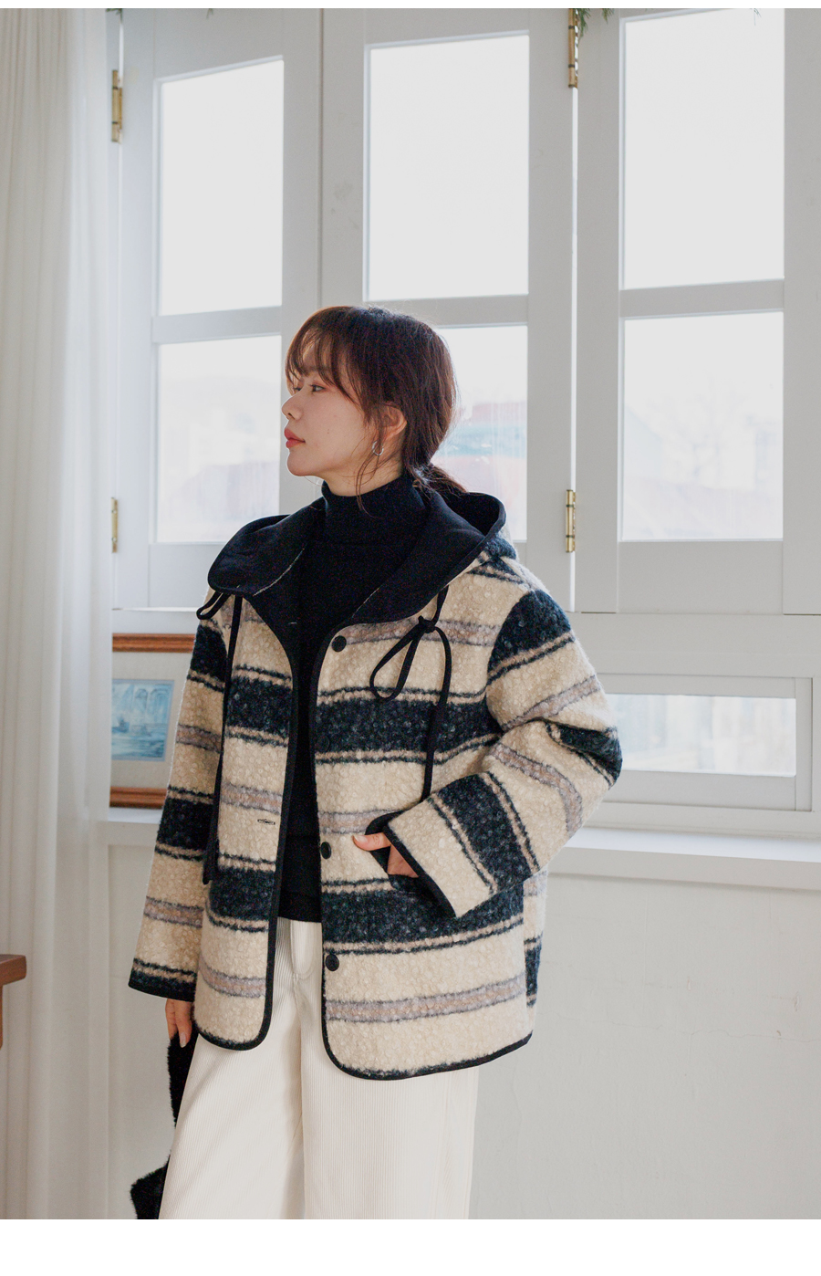 ✓ 코트 하나만으로 포인트 주는 부클 소재