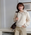 부클 소재와 패딩 후드가 믹스된 니트에요