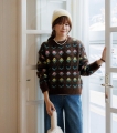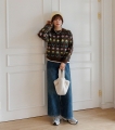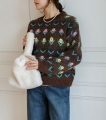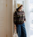 Wool-blend knit material! Hairy quality with a cozy feel - Flower pattern adds a subtle, lovely mood to a simple look (2 colors) *Brown 1/15 (Thu) Estimate storage*