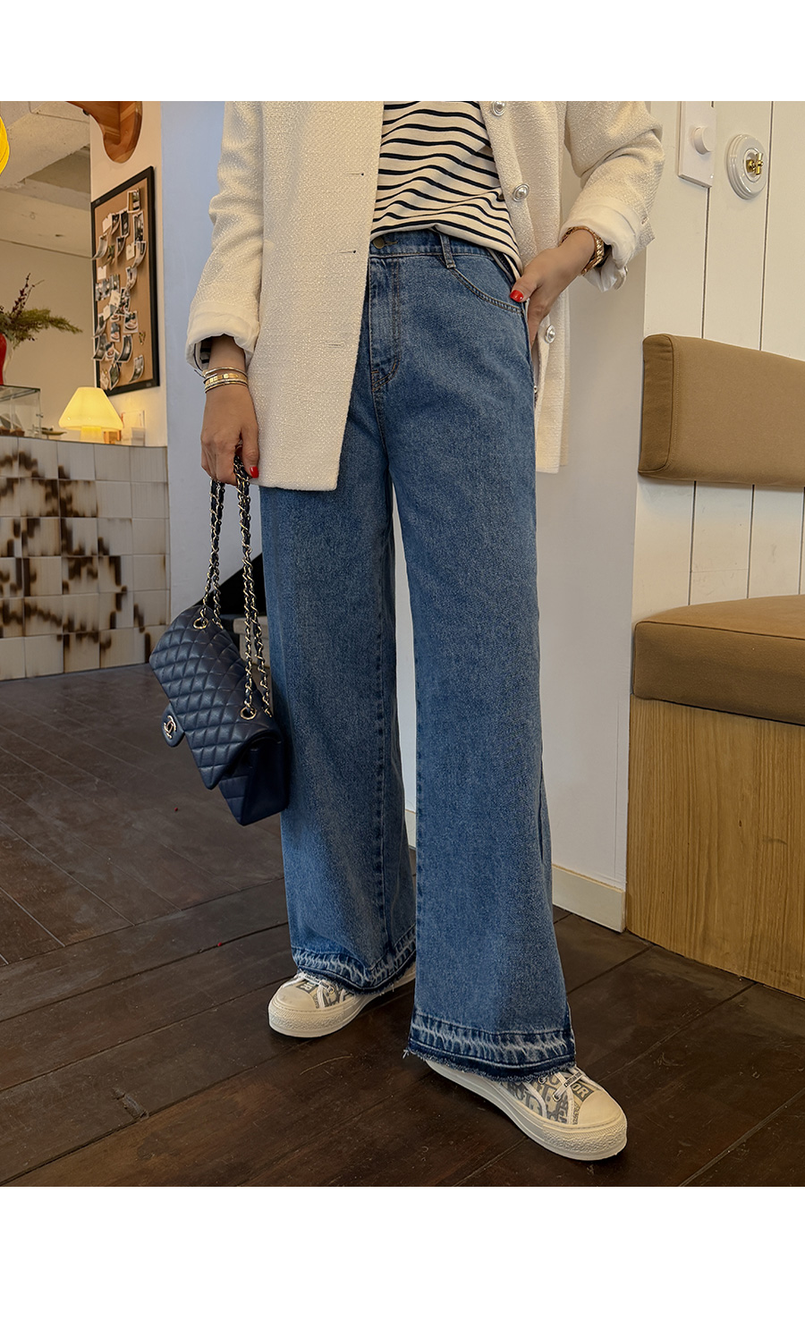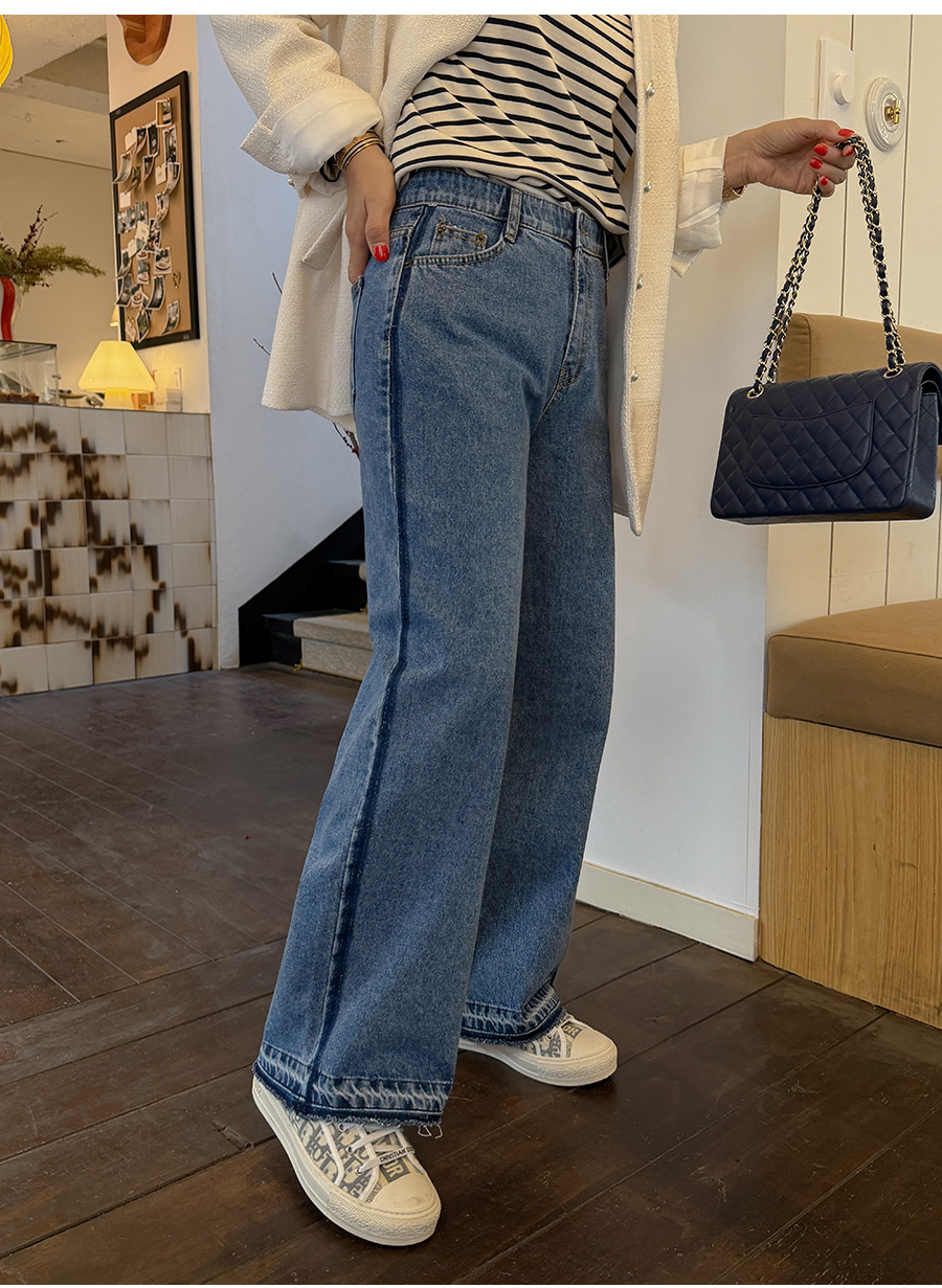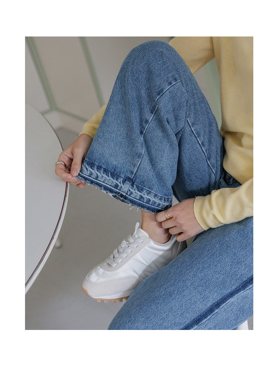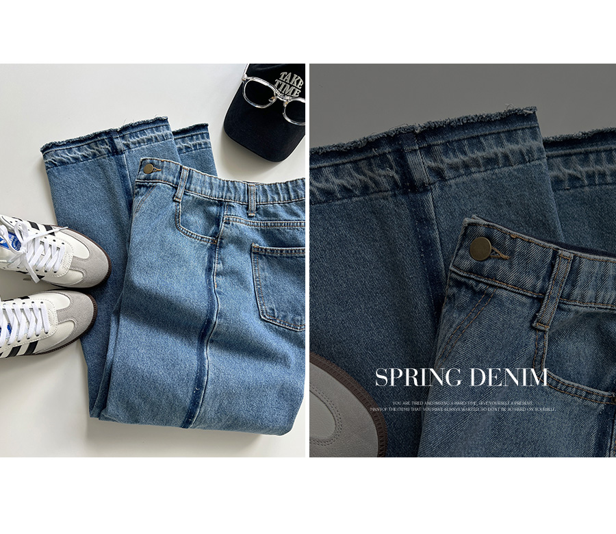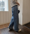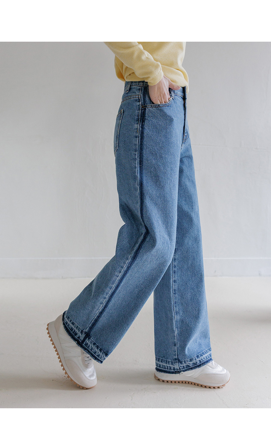 Chic color combination, track line washing, and hem trim are the key points. New details are a touch different from the rest. Denim with high sensitivity! (2 colors / S~L)
