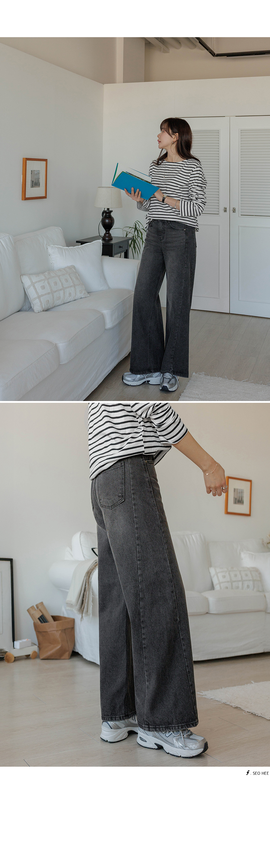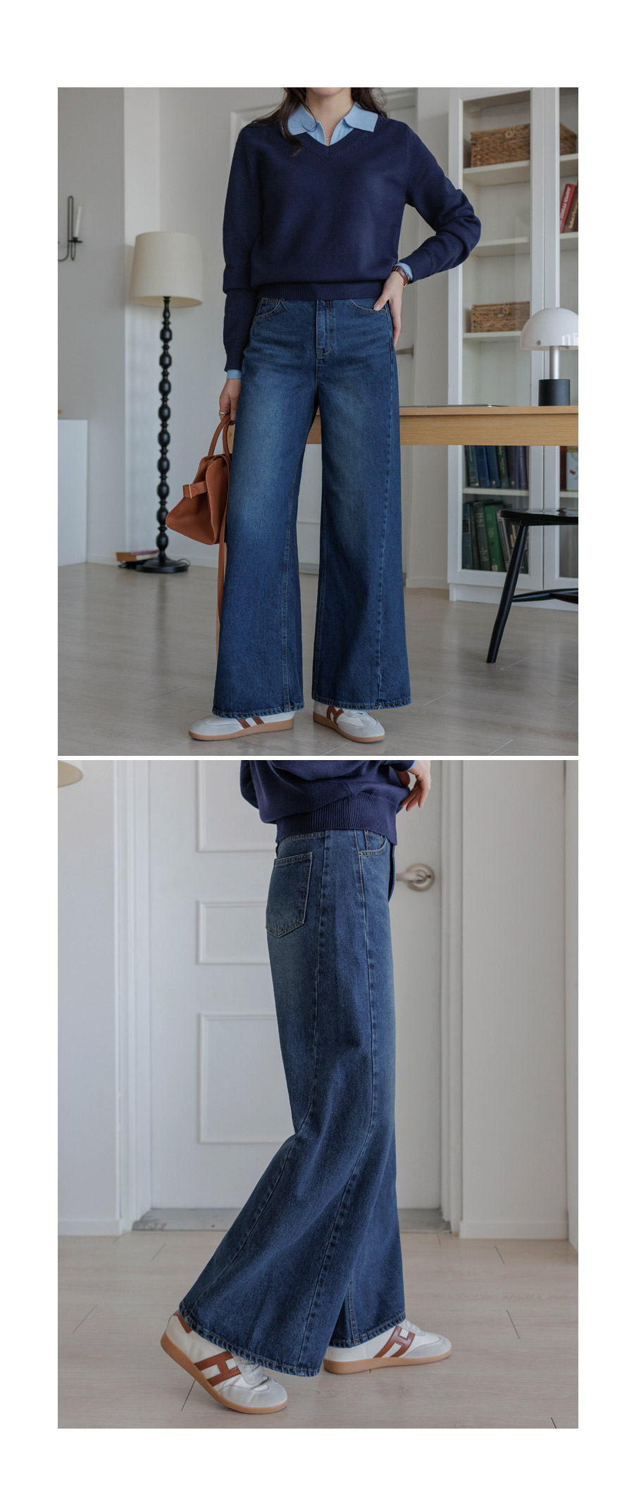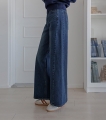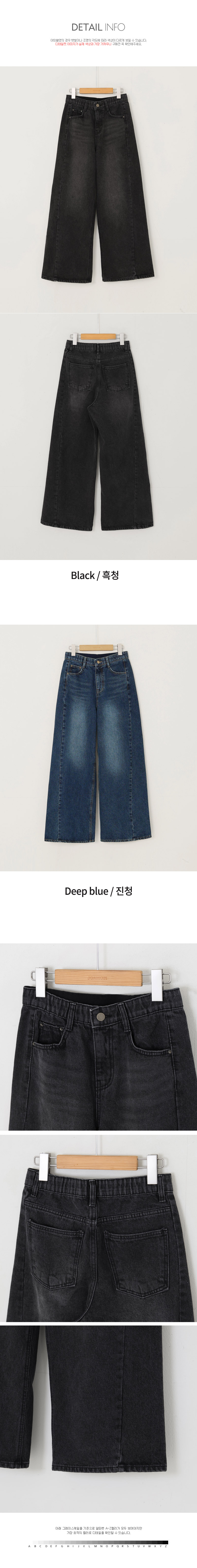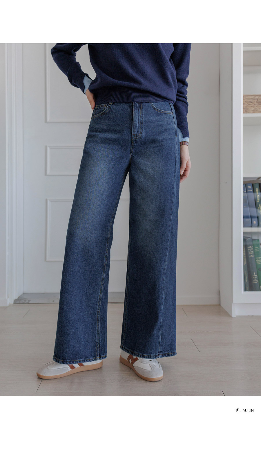 사이드 절개 라인으로 플레어지는 입체감 있는 와이드 데님