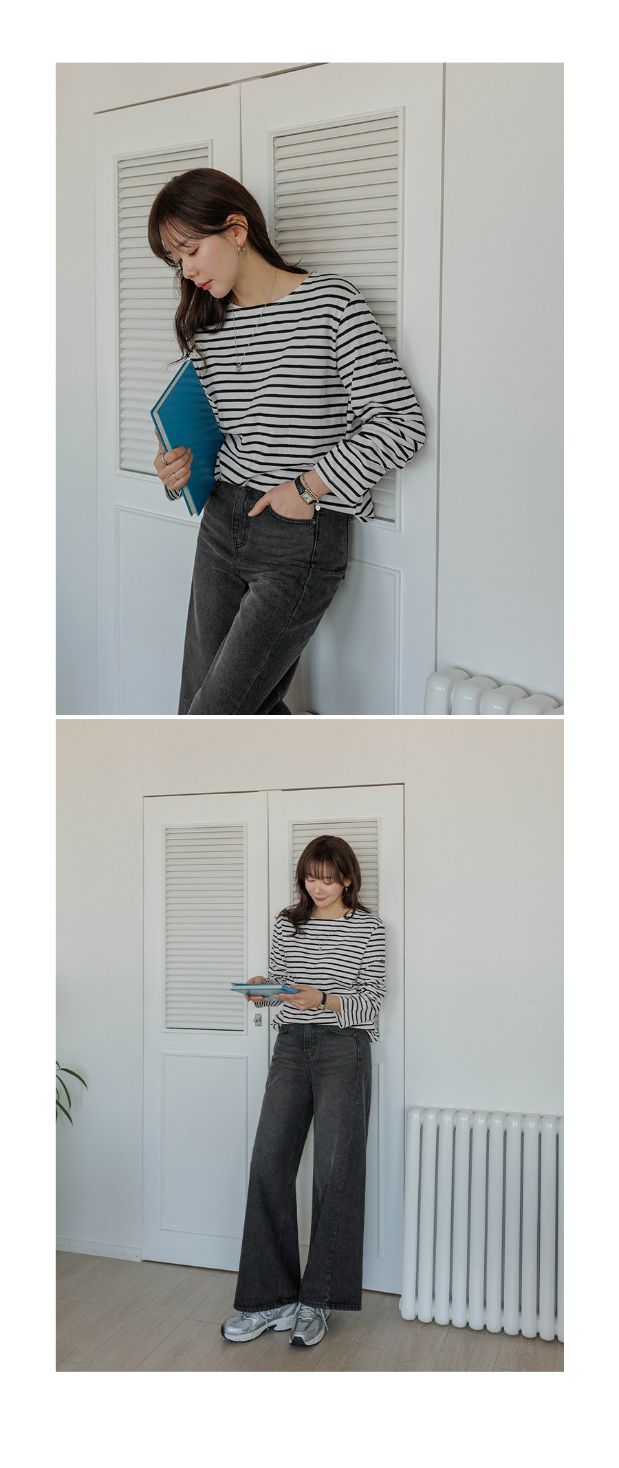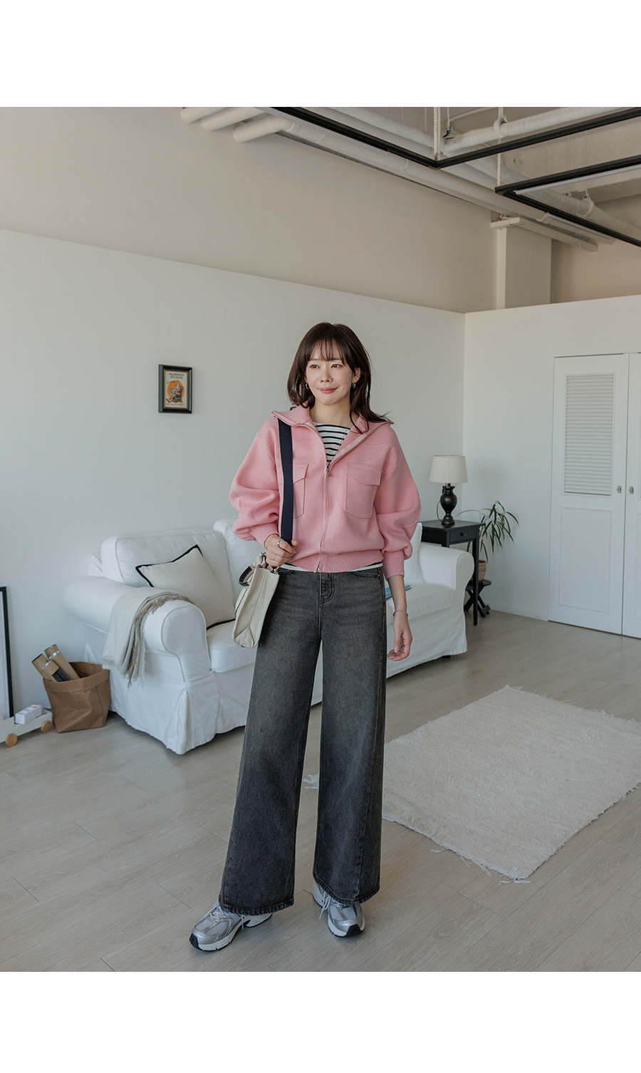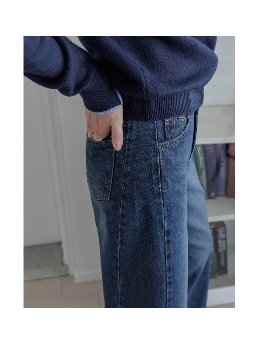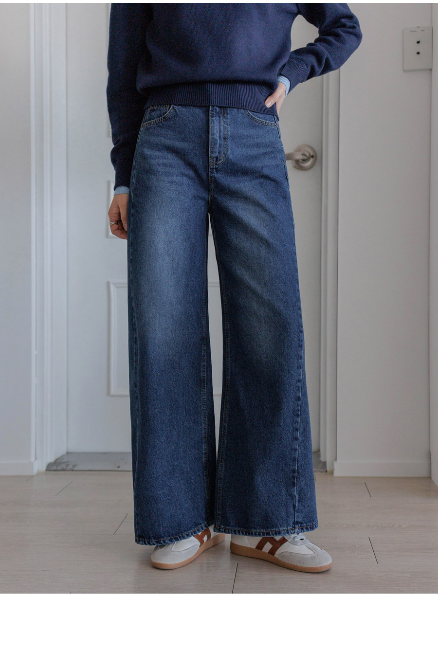 사이드 절개 라인으로 플레어지는 입체감 있는 와이드 데님