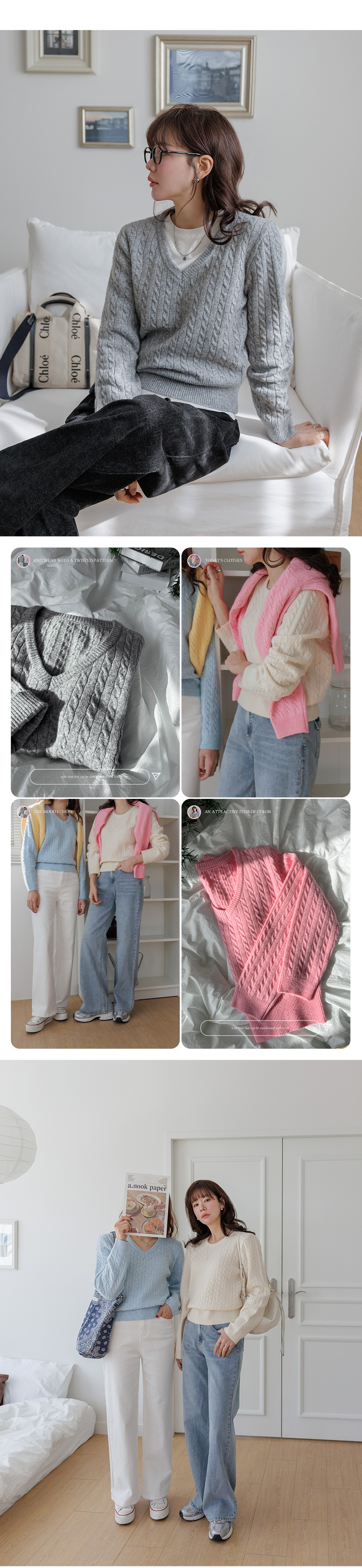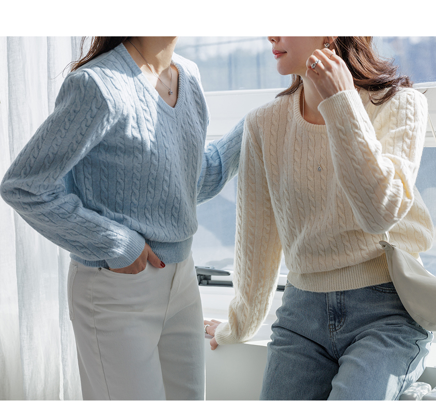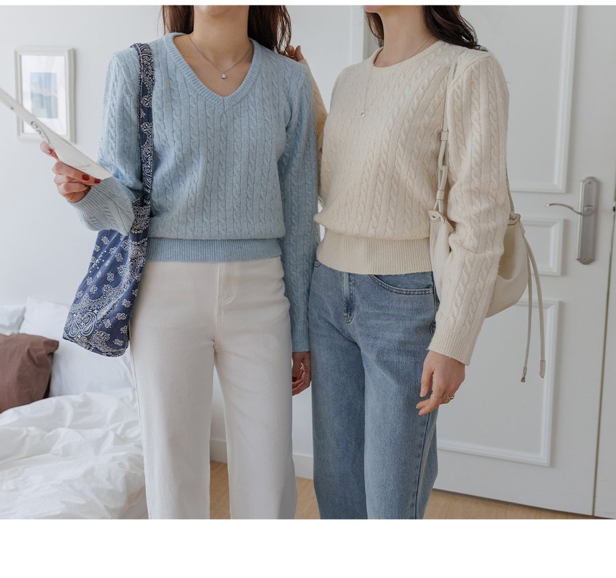 Bonnie Cable Knit (2 Types: Round Neck/V-Neck)