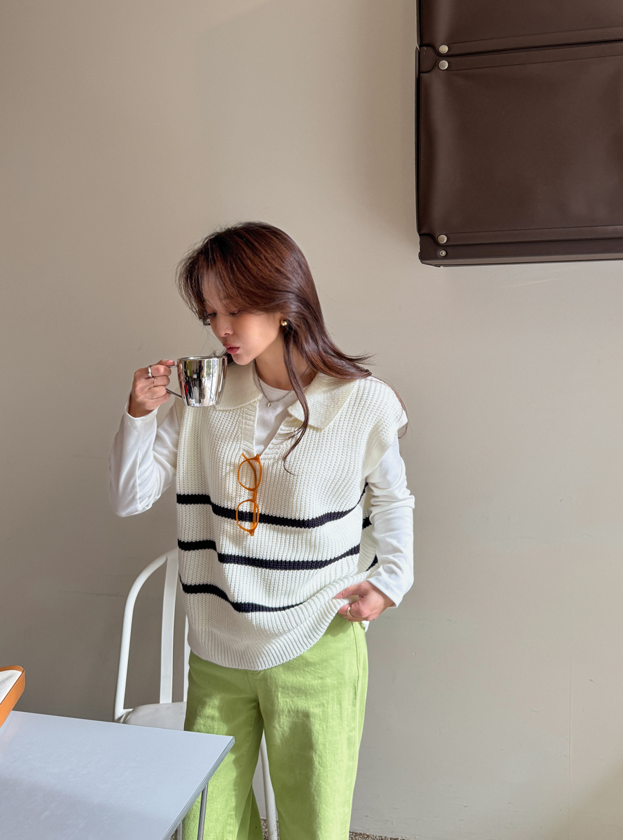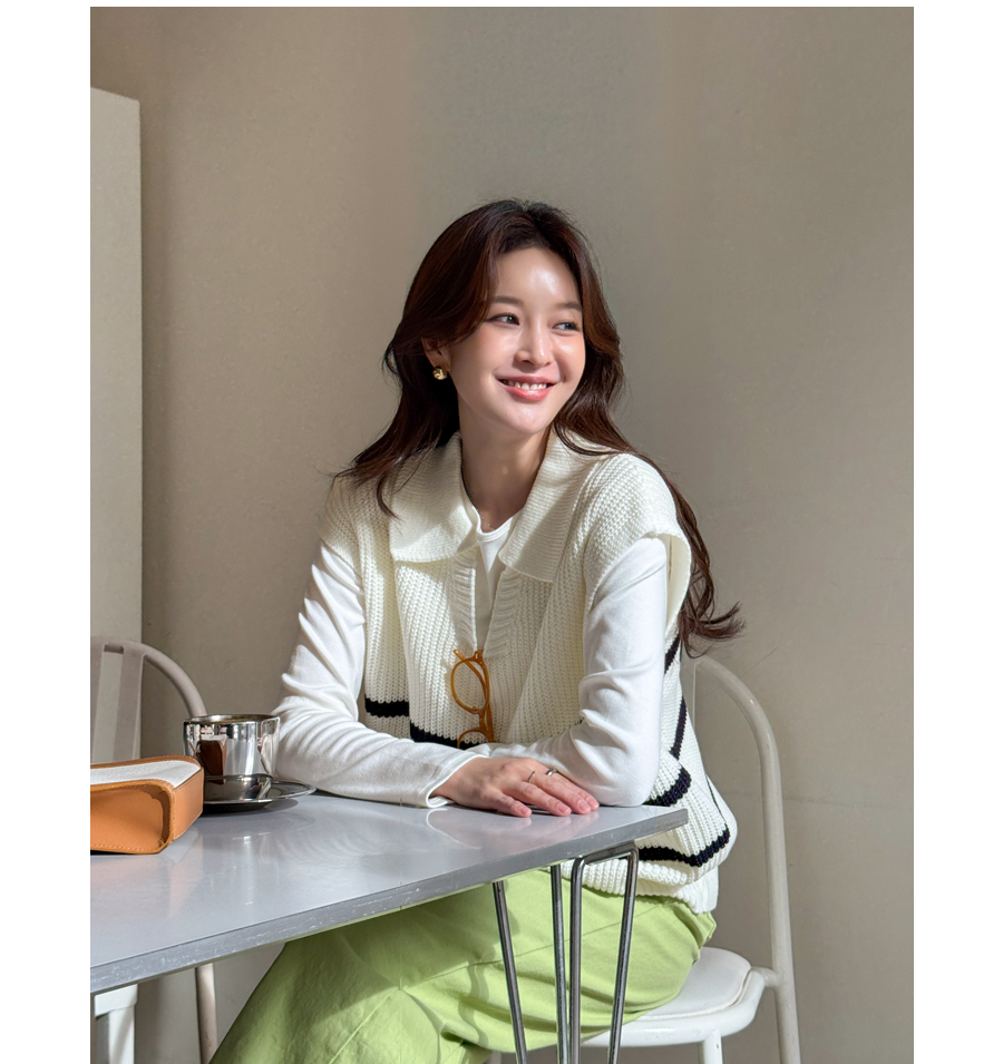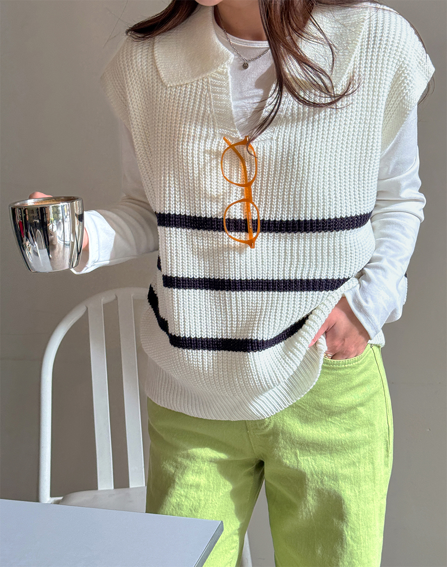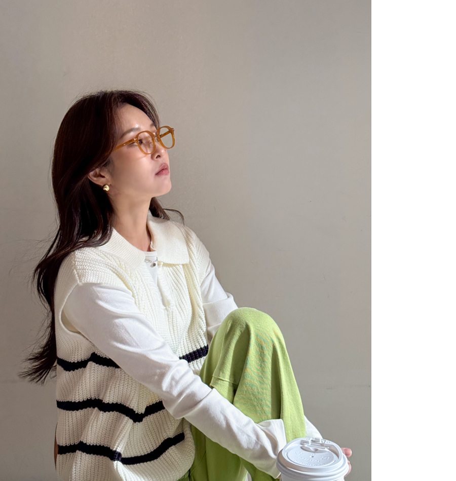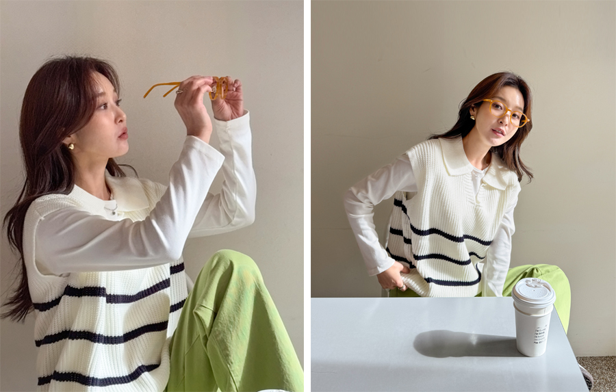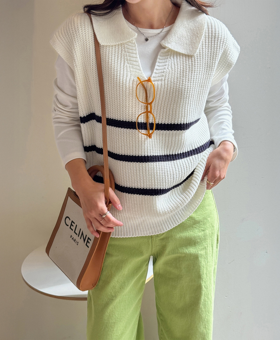 캐주얼하면서 클래식한 무드 한방울 톡-들어간 니트 조끼
