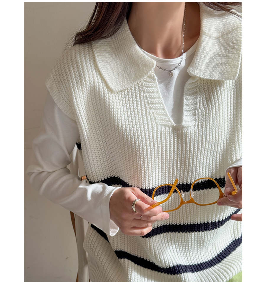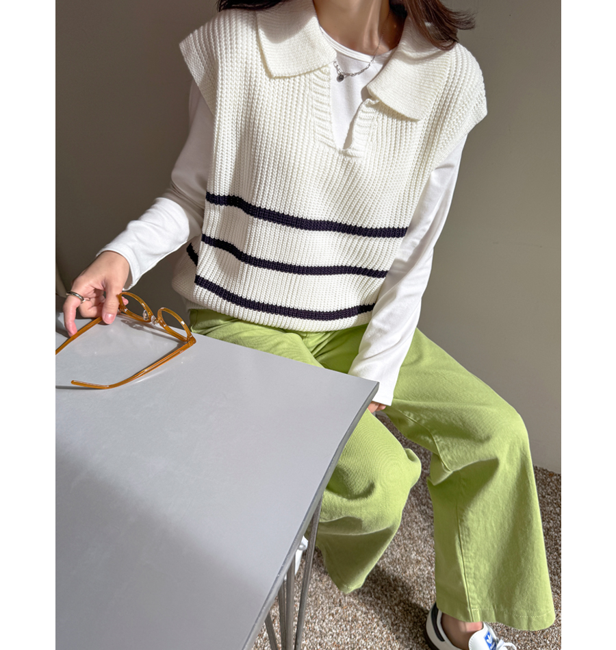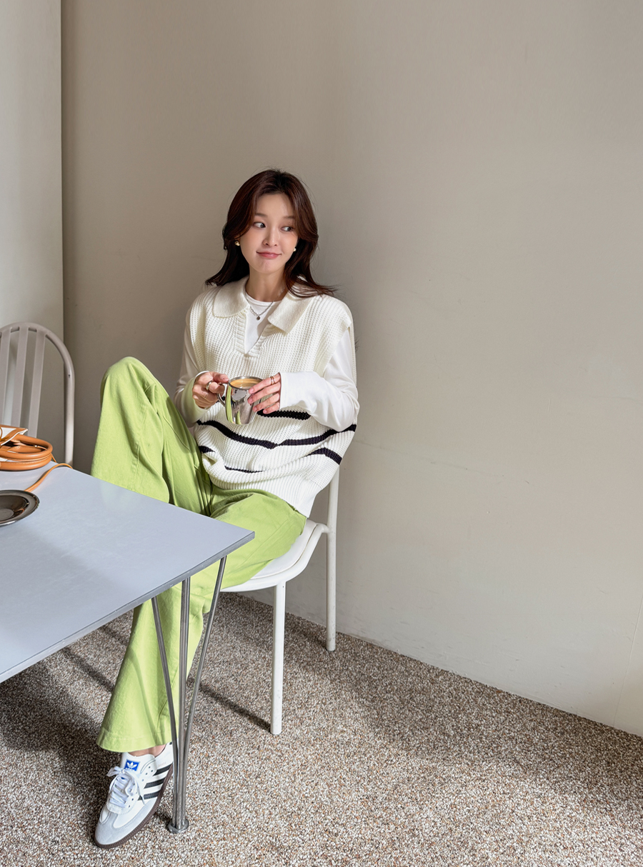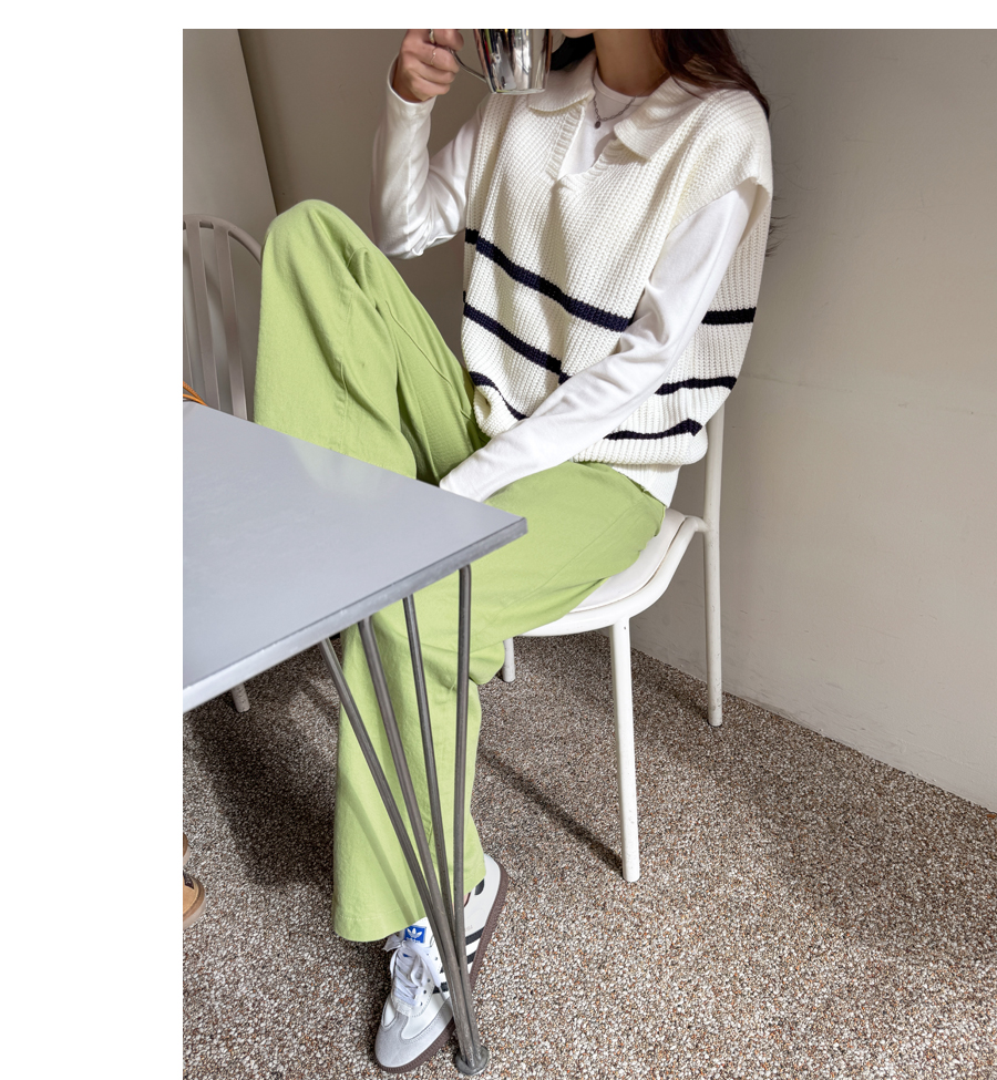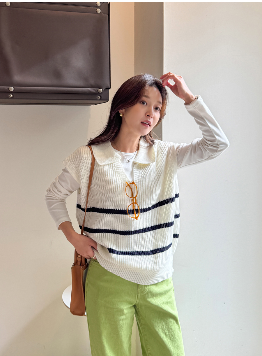 캐주얼하면서 클래식한 무드 한방울 톡-들어간 니트 조끼