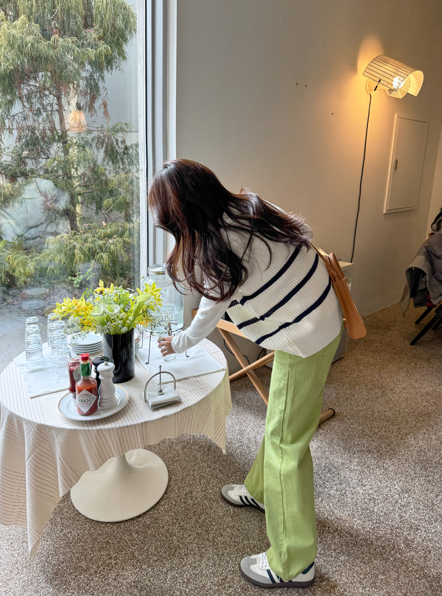 넥라인이 자연스럽게 드러나 목선이 길어 보이는 반오픈 넥