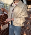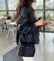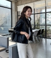 Full of style with delicate shirring at the hem~! Eco leather jacket with low gloss for a luxurious look (2 colors) *Cream end of March Estimate storage*