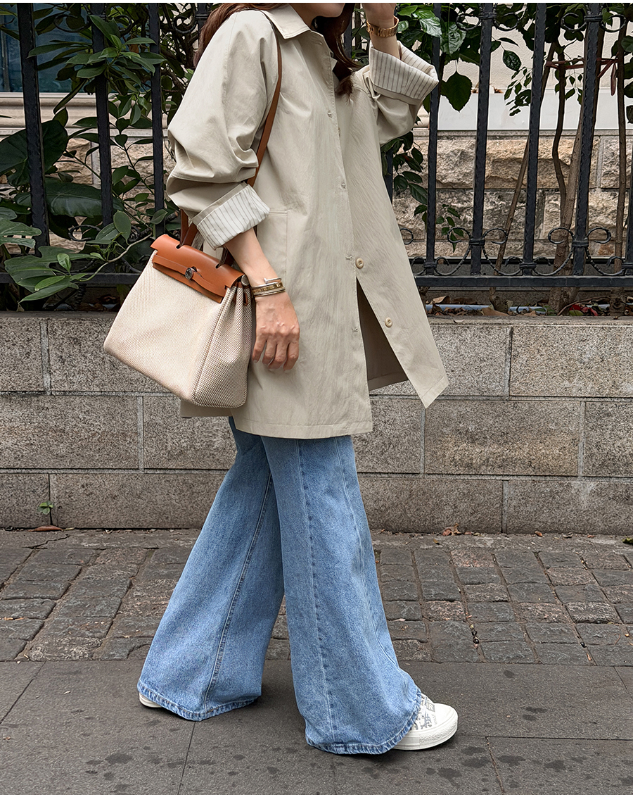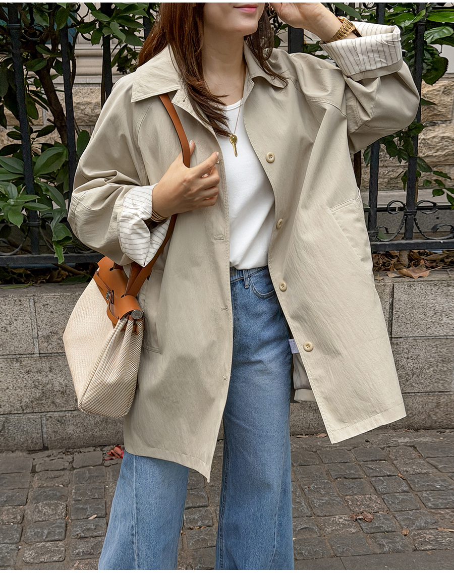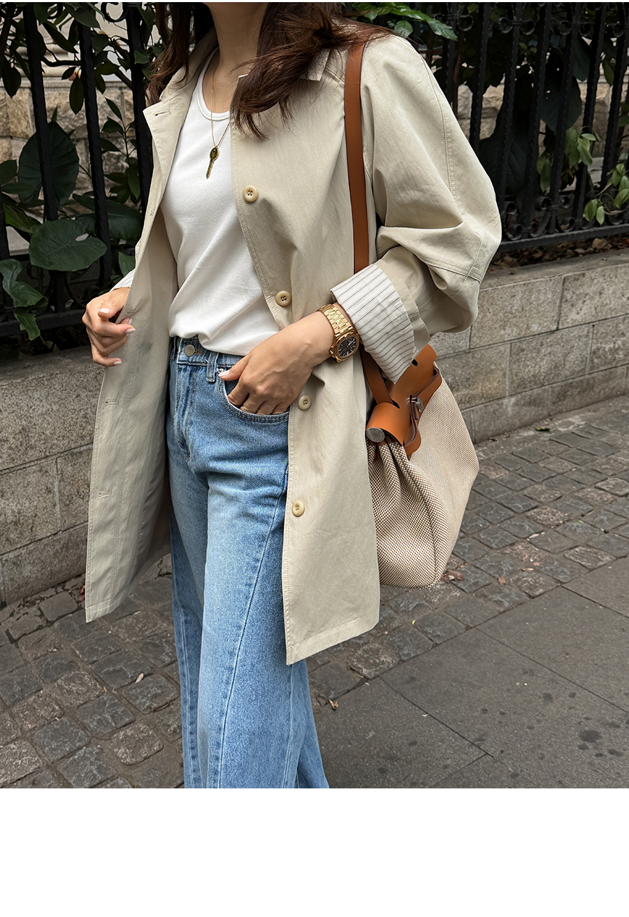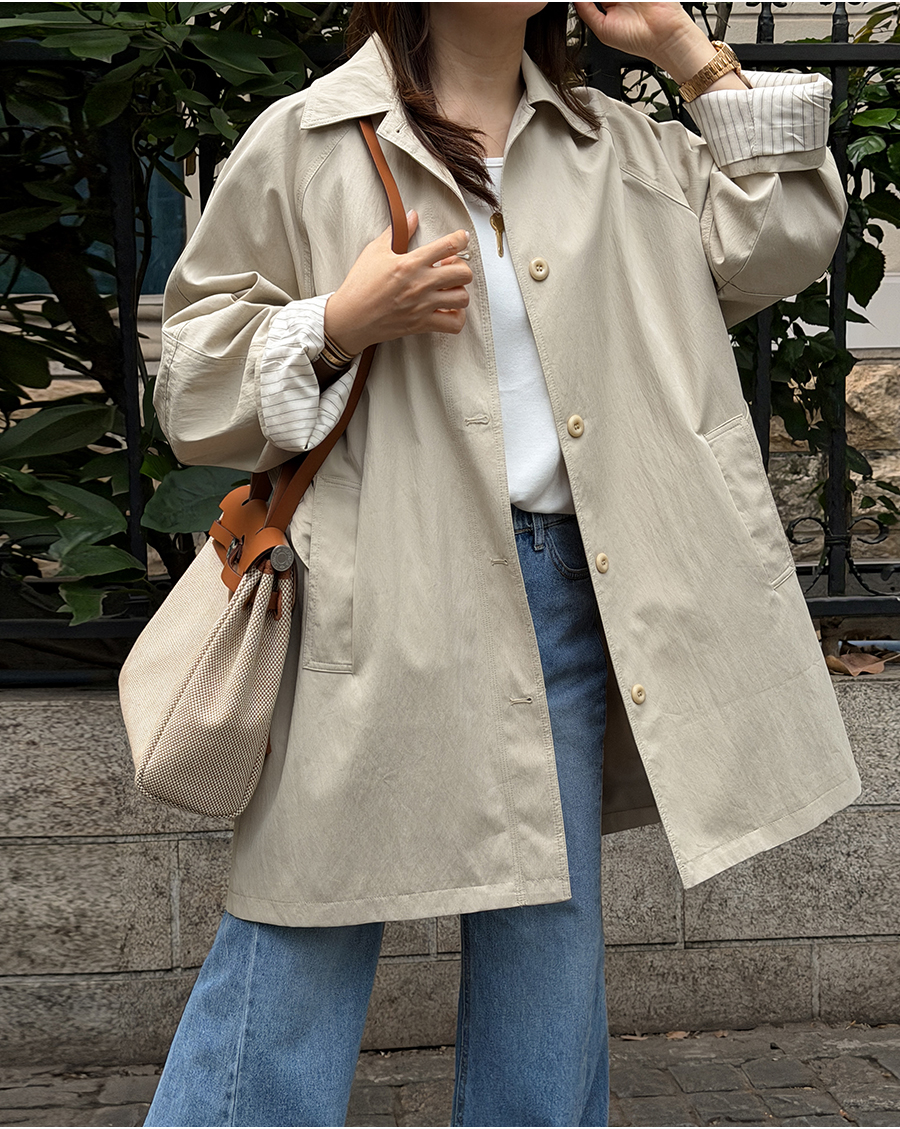 소매 스트라이프 배색으로 포인트를 준 세련된 하프 트렌치