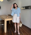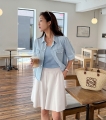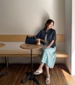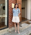 밑단 언밸런스 기장에 앞부분 세미 크롭으로 경쾌한 무드