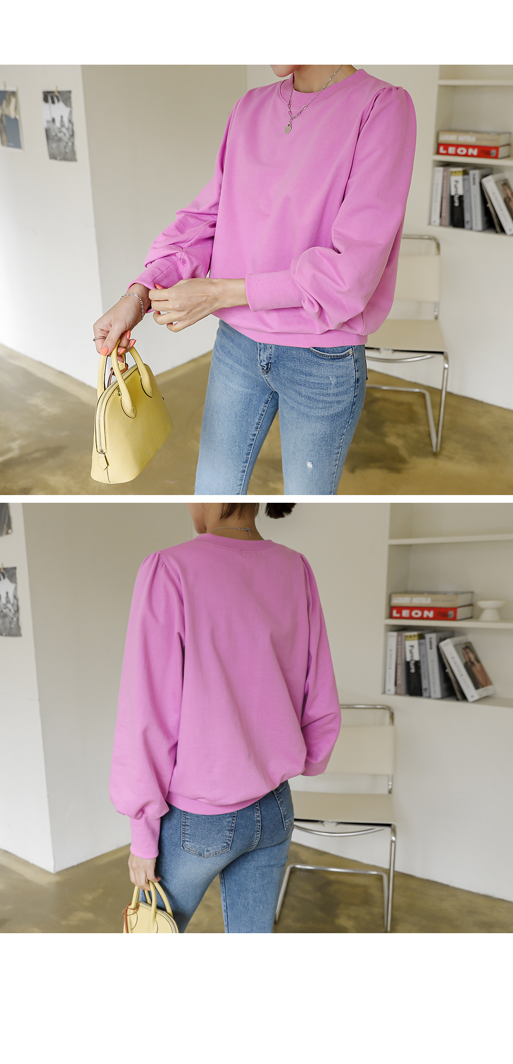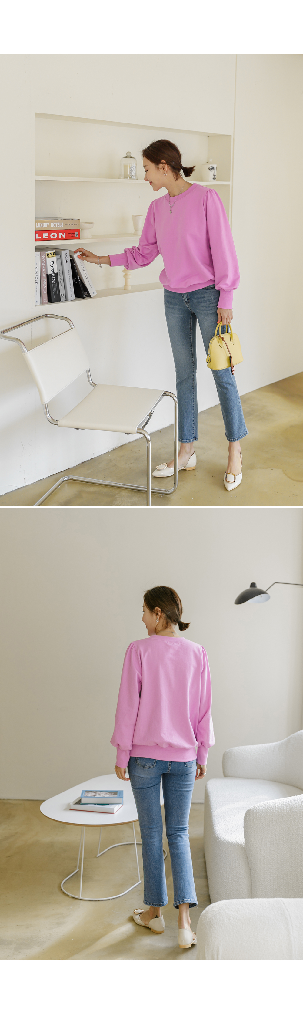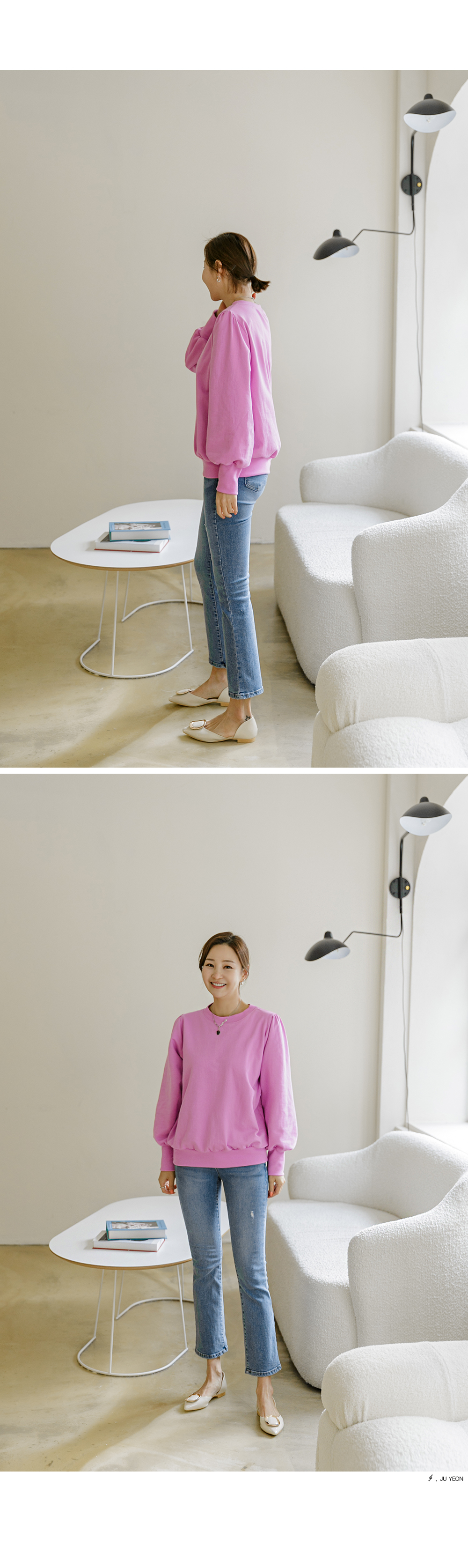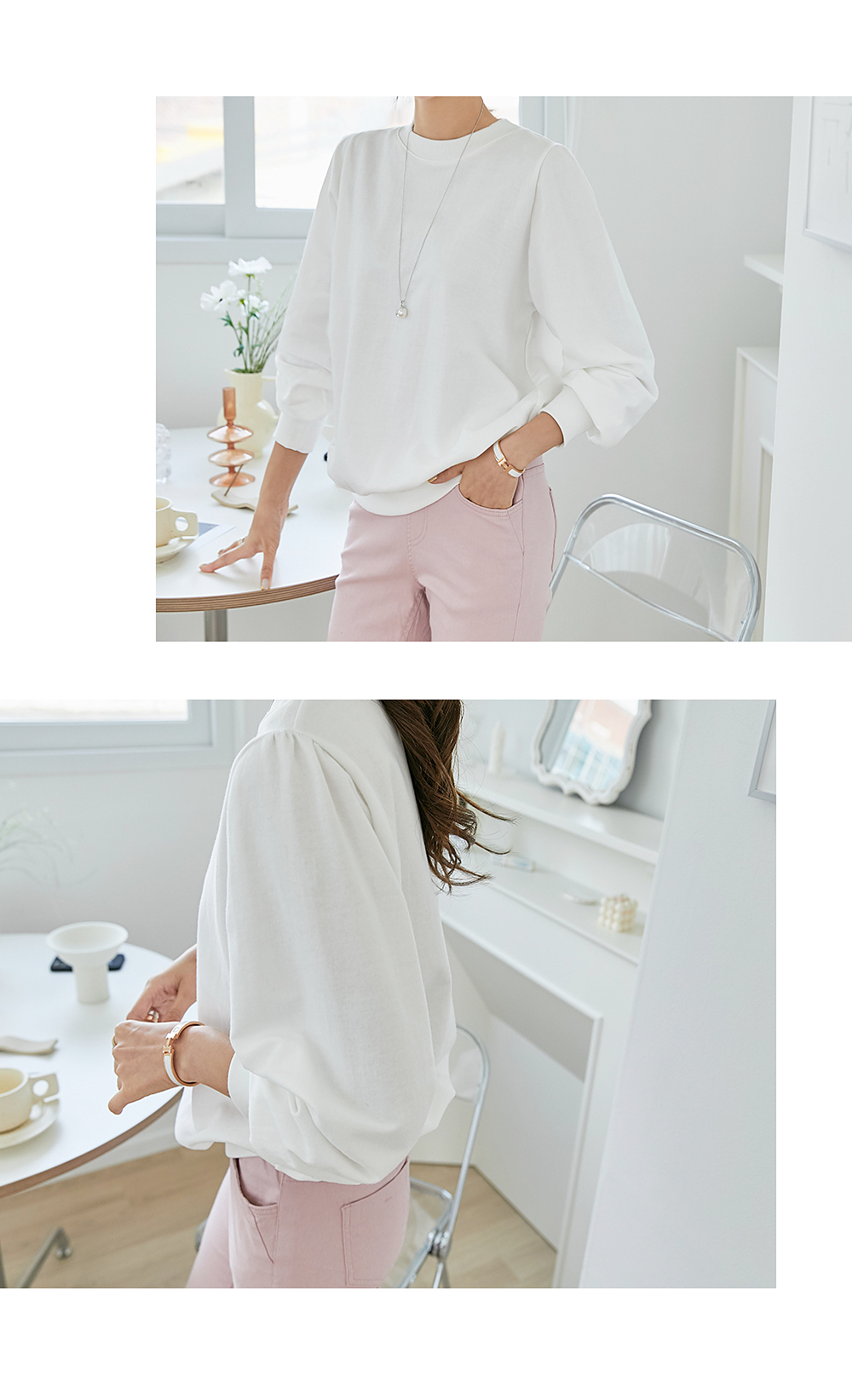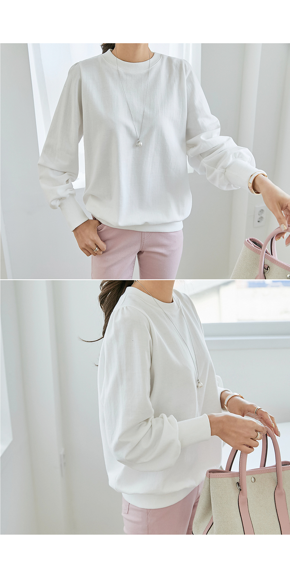 적당히 풍성한 소매 볼륨으로 여성스럽고 러블리한