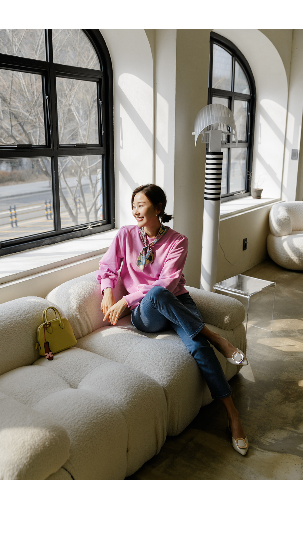 베이직 컬러인 아이보리와 블랙, 봄 시즌 화사하게
