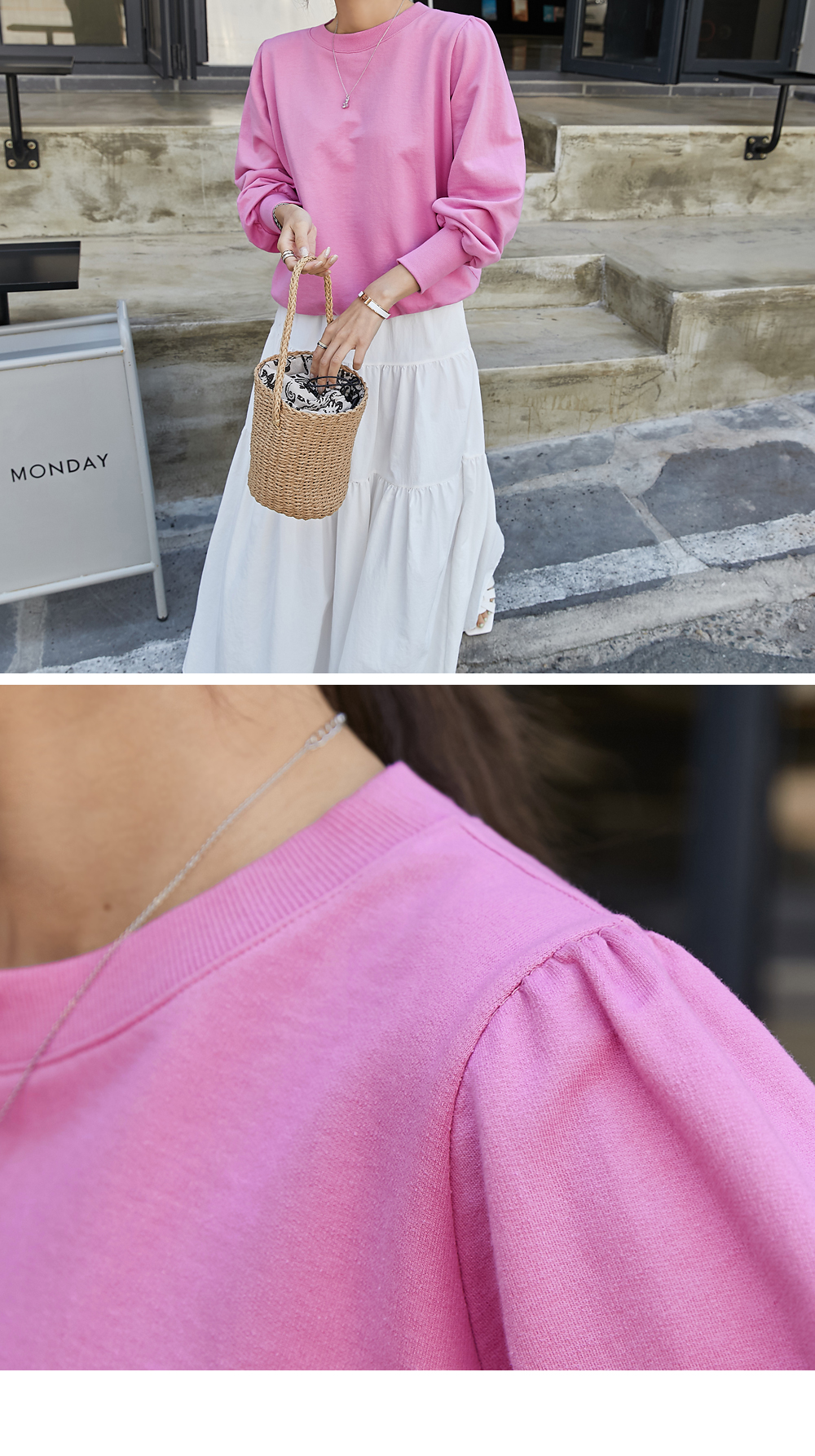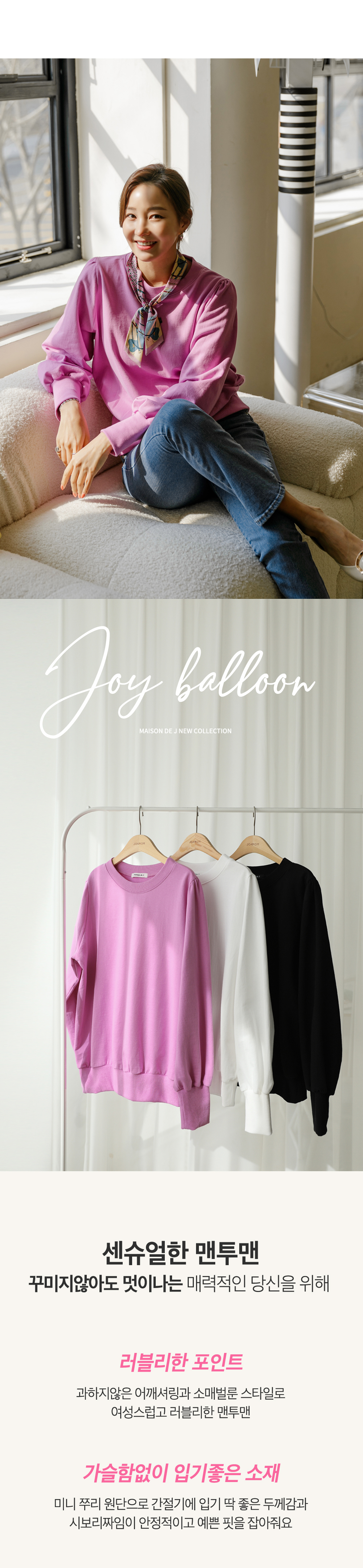 맨투맨 하나로 여성스러움과 러블리함 물씬~